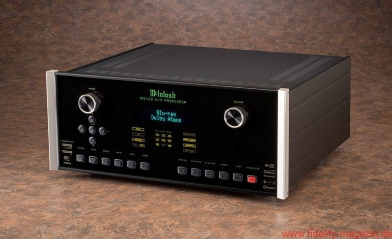 The MX122 A/V Processor can serve as the brain center for an advanced home theater system for years to come. It features many of the latest breakthroughs in surround sound and object-based 3D audio such as Dolby® Atmos, and will be upgradeable to support DTS:X™ and Auro-3D®. Besides 3D audio, existing formats like Dolby TrueHD, DTS-HD Master Audio™ and others are still supported. Regardless the format, all audio will be processed to legendary McIntosh sound quality and performance standards. The MX122 is also fully compatible with modern 4K Ultra HD video sources and can upscale lower resolutions to 4K Ultra HD for the best possible picture quality. A wide assortment of inputs and outputs are included to connect current and future entertainment sources. All HDMI inputs and outputs are HDCP 2.2 and support High Dynamic Range (HDR), 4K Ultra HD at 50/60Hz, 4:4:4 color, Rec. 2020 and 3D video pass-through. The enjoyment the MX122 delivers does not have to be confined to just one room as the MX122 can send select audio and/or video to 2 additional zones within in the house. Users can connect to their online digital music with either the wired or wireless network connections. DSD64 files can be played from flash drives or over the network. Bluetooth and AirPlay® connectivity allows for easy streaming from mobile devices. Interfaces to popular streaming services including Pandora®, SiriusXM® and Spotify® are included while vTuner connects to 1,000s of internet radio stations. Audyssey MultEQ® XT32 will calibrate the MX122 to each home theater’s unique acoustical properties.