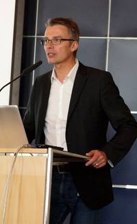 Jan Rickers, Vorstandsmitglied beim Bundesverband Audiovisuelle Medien BVV und Vizepräsident bei STUDIOCANAL Home Entertainment Germany unterstreicht in seiner Keynote die Bedeutung und die Chancen der Markteinführung anhand der in der jüngsten Vergangenheit durch die Einführung der Blu-ray als Nachfolger der DVD positiven Erfahrungen im Video-Markt.