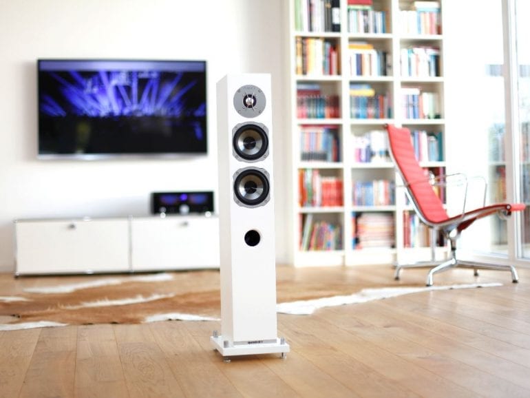 Doch auch die Technik beeindruckt – ein 25-mm-Aluminium-Hochtöner eint beide Schallwandler. Bei den hochmodernen Tieftönern mit titanbeschichteter Polypropylen-Membran vertraut die Rhodium 500 auf jeweils 155 mm Durchmesser, bei der Rhodium 400 sind es jeweils 135 mm Durchmesser. 100 Watt Nenn- und 150 Watt Musikbelastbarkeit sind bei Rhodium 500 und Rhodium 400 Garanten für Souveränität und beste Pegelfestigkeit. Mit einer oberen Grenzfrequenz von 38 kHz eignen sich die beiden Standlautsprecher sogar für moderne High-Resolution-Audio-Medien mit erweitertem Obertonbereich.