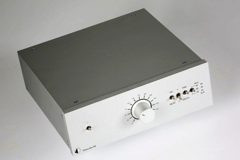 Wie gut diese Phonostufe tatsächlich ist, lässt sich mit ein bisschen Erfahrung schon an Erscheinungsbild und Haptik festmachen. Die Kleine kommt im typischen „großen“ Vollmetall-Design der gehobenen Box-Serie – erkennbar am RS-Kürzel – daher: dicke Frontplatte in massivem Aluminium, klassische Proportionen und erstklassige Ausstattung. Und ähnlich wie bei besagtem Plattenspieler gilt auch hier: Käme das Maschinchen aus den USA und hätte ich davon nur ein Foto zur Hand, würde ich es ohne weiteres als Fullsize-Vollverstärker durchwinken. Dann wäre alles klar: 45 Zentimeter breit, mindestens 15 Kilo schwer, bestückt mit dicken Kippschaltern und einem satt laufenden, kaffeetassegroßen Volume-Steller. Preis? Vielleicht drei-, eher fünftausend Euro …