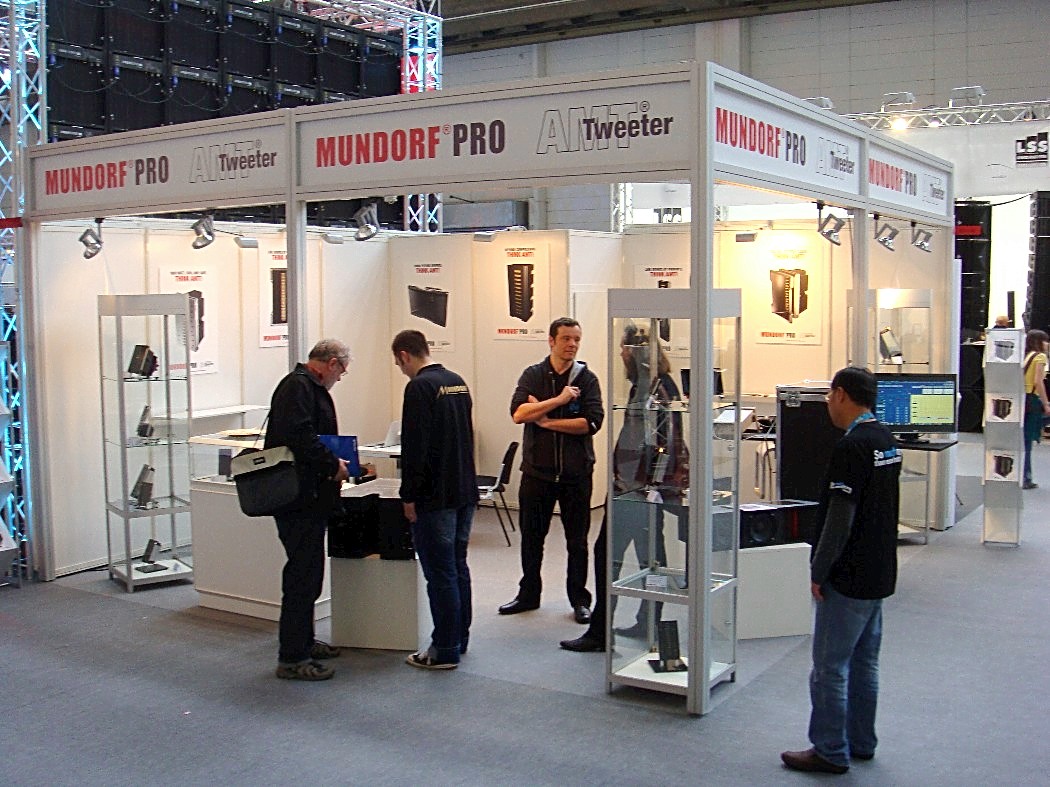 Wie in jedem Jahr gab es auch diesmal viel zu entdecken, zu sehen und zu bestaunen. Gleich zu Beginn fallen im Profilager Parallelen zum HiFi- und High End- Bereich auf. Vintage. Vintage ist auch bei den Profis ein Trend. Mehr noch: es scheint hier ein echter Megatrend zu sein. Man könnte meinen, das Profilager befände sich im Sog einer Rückwärtsspirale. Eingesogen in einen Time-Tunnel. Geräte sehen so aus als kämen sie direkt aus den 50er Jahren. Röhren und Bakelit-Knöpfe an allen Ecken. Sogar das Magische-Auge wird wieder verbaut – nur – der Sound ist ganz eindeutig von heute! Dass man unter den Profibeschallern ebenfalls Wert auf Qualität legt, zeigt die große Zahl von Spezialvertrieben für Röhren. Sogar Hersteller von Röhren sind anzutreffen. Beispielsweise JJ Electronics, die neben dem kompletten „Brot und Butter“- Programm auch einzeln ausgemessene 300Bs und 2A3s im Gepäck hatten. Einige Stände weiter wurden bei Marshall Röhrenverstärker zusammen gebaut. Handarbeit durch und durch. Keine Platine trübt das Auge. Alles wird ausschließlich mit einer aufwendigen Punkt-zu-Punkt-Verdrahtung verbunden. Die Marshallianer wissen offensichtlich was sie tun, denn der klangliche Erfolg gibt ihnen Recht. Das alles hat natürlich seinen Preis. Ganze 8 Stunden Handverdrahtung stecken in jedem dieser Verstärker und machen sie sicher nicht zu einem Schnäppchen. Aber wer will das schon? Sehr spannend ist es, auch immer wieder die „Grenzgänger“ der HiFi- und High End-Szene im Profilager anzutreffen. Zu allererst ist sicherlich Manger Products zu nennen. Daniela Manger war persönlich nach Frankfurt angereist und gab einen kleinen Einblick, wer im Profi Bereich alles bereits über die außergewöhnlichen Monitore abmischt. Die Liste ist lang, illuster und reicht bis zu den allerhöchsten Namen, wie beispielsweise den Filmmusik-Komponisten Claudius Bruese, der – man höre und staune – mit Hans Zimmer zusammen arbeitet. Ja genau, dieser Hans Zimmer, der Oskars für die beste Filmmusik am laufenden Band absahnt. Keine schlechte Referenz, wie wir meinen. Wie jedes Jahr, so war auch diesmal wieder ADAM Audio mit dabei. Die im letzten Jahr als Prototypen vorgestellten kleinen Aktivlautsprecher F5 und F7 sind jetzt lieferbar und mit 200,- bzw. 300,- EUR pro Stück auffallend preiswert und gut. Von Klaus Heinz erfuhren wir auch, das es von der bisher aktiven Tensor-Serie auf der diesjährigen High End München passive Versionen zu sehen und hören geben wird. Das wird dem Geschmack vieler Audiophiler entgegen kommen. Der Clou ist aber, ADAM wird für die passiven Tensor-Varianten einen eigenen Endverstärker anbieten, um das volle Potential der Lautsprecher ausschöpfen zu können. Auf die Frage, ob der neue Endverstärker bereits zur Messe in München fertig sein werde, hielt sich Klaus Heinz aber noch bedeckt. Wollen, wolle man ja schon, einzig die Zeit scheint sehr knapp zu werden. Wir lassen uns überraschen. Auffallend in Frankfurt war die große Zahl an Ausstellern, die sich mit dem wichtigen Thema der Raumakustik beschäftigen. Hier scheint es ganz klar ein anderes Augenmerk als im HiFi-Bereich zu geben. Bei den Profis ist Raumakustik kein Randthema, sondern vielmehr ein wichtiger integrativer Bestandteil des Gesamtergebnisses. Das geht so weit, dass es Studiomöbel gibt (Beispiel Sessiondesk), die durch Formgebung und die Wahl der Oberflächenmaterialien auf ihre klangliche Signatur hin optimiert werden. Da können wir von den Profis und ihrer völlig sachbezogenen Herangehensweise eine Menge lernen! Frankfurt bietet auch einen umfassenden Überblick auf das Geschehen im Markt für Lautsprechertreiber. Neben all den großen und kleinen Marken fällt ein Name wirklich ins Auge. Mundorf. Reimund Mundorf hat über viele Jahre hinweg (seit 2005 um genau zu sein) das Konzept des AMT (Air Motion Transformer) zu einer Reife entwickelt, wie es sie kein zweites Mal gibt. Die Treiber allerhöchster Güte warten mit Parametern auf, die sich nahe am theoretischen Ideal bewegen. Hoch belastbar, mit einem hohen Wirkungsgrad und ungewöhnlich niedrigen Verzerrungen ausgestattet, bieten sich diese Treiber dank ihrer Linearität nicht nur in höchstwertigen High End-Konstruktionen an, sondern finden auch im Profilager dank ihrer Robustheit immer größer werdende Beliebtheit. Es würde nicht verwundern, wenn wir in Zukunft eine Menge mehr Lautsprecherkonstruktionen sehen würden, die sich im kritischen Hochtonbereich auf Mundorf AMT Treiber abstützen. Eines der ungewöhnlichsten Produkte in Frankfurt war ein Lautsprecher in Form eines voll flexiblen Schlauchs, der nahezu beliebig verlängerbar ist. Das verblüffende: dieser Schlauch klang gut!
