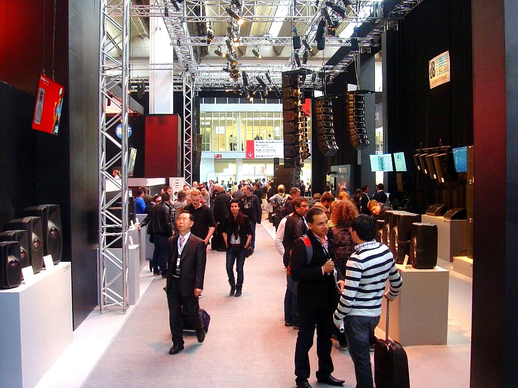 Während ich die ersten Zeilen über die diesjährige Pro Light + Sound 2013 in Frankfurt schreibe, ploppt schon per Mail der offizielle Abschlussbericht der Messe Frankfurt in meine Mailbox. Ein Rekord wird verkündet. 113.000 Besucher aus 142 (!) Ländern. Das ist eine Steigerung zum Vorjahr um 3% und setzt eine neue Marke für ein Allzeit-Hoch. Respekt. Ich selbst hatte offensichtlich fälschlicherweise den Eindruck gehabt die Messe habe sich verkleinert. Halle 6 war in diesem Jahr geschlossen. Die Aussteller, die sonst dort anzutreffen waren, sind kurzerhand auf die Hallen 5.1 und 8 verteilt worden. Das sah spontan nicht nach Wachstum aus. Was ich zu diesem Zeitpunkt jedoch noch nicht wusste, war die Tatsache, dass alle asiatischen Hersteller in diesem Jahr eine eigene komplette Halle füllten. Die gewaltige Halle 9.1 war fest in asiatischer Hand und zeigte die enorme Leistungsfähigkeit dieser Hersteller, die das gesamte Spektrum an Produkten bis hin zu trickreichen Sonderlösungen abdeckten. Trotzdem bin ich mir nicht im Klaren darüber, ob es eine gute Idee war, die asiatischen Hersteller derart zu konzentrieren. Der Auftritt hatte etwas enklavisches, was u. U. einige Besucher davon abgehalten hat, sich dort umzusehen. Schade.
