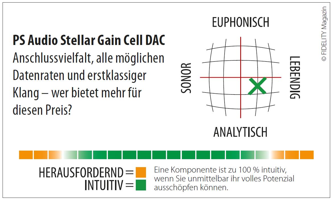 PS Audios „Gain Cell“ variiert beim Dreh am Lautstärkeregler den Verstärkungsfaktor, anstatt das Signal als solches zu beeinflussen. Durch den „Variable Gain Amplifier“ erspart sich PS Audio zusätzliche Schaltungen im Signalpfad und erreicht einen extrem sauberen Regelbereich von über 80 dB. Auch im Stellar Gain Cell DAC funktioniert die „Gain Cell“ rein analog: Sie schaltet die Eingänge des Vorverstärkers um, ohne jemals die analoge Ebene zu verlassen, besitzt zudem ein vollsymmetrisches Schaltungslayout, um Einstreuungen und Übersprechen zu minimieren.