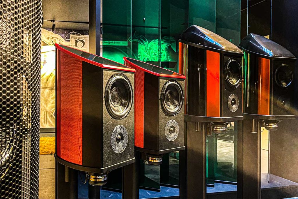 Raum und Ton verfolgt ein ganz besonderes Konzept, bei dem HiFi-Komponenten und Einrichtung perfekt zusammenspielen. Mit viel Überlegung und Expertise entstehen so die optimalen Bedingungen, um auch hochwertigste Systeme im richtigen Kontext zu erleben. In dieser einzigartigen Umgebung können Endkunden und Medienvertreter die Wilson Benesch Fibonacci Lautsprecher in entspannter Atmosphäre mit exquisiter Akustik kennenlernen. In mehreren Setups spielen die verschiedenen Modelle der Serie in Kombination mit Elektronik von Marken wie Soulnote, Luxman und Linn, welche die edlen Lautsprecher klanglich zur Geltung bringen.