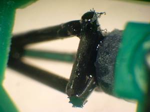 Direkt wiegen kann man diese zwar nicht, ohne den Nadeleinschub zu zerstoren, aber die Schatzung, dass sich die Masse verdoppelt oder gar verdreifacht hat, durfte nicht zu hoch gegriffen sein. Das gilt insbesondere auch deshalb, weil sich alle zusatzlichen Verstrebungen deutlich vom Drehpunkt entfernt befinden. Diese Masse-Erhohung sollte sich schon beim einfachen Abtasttest und Messungen der Resonanzfrequenz bemerkbar machen.