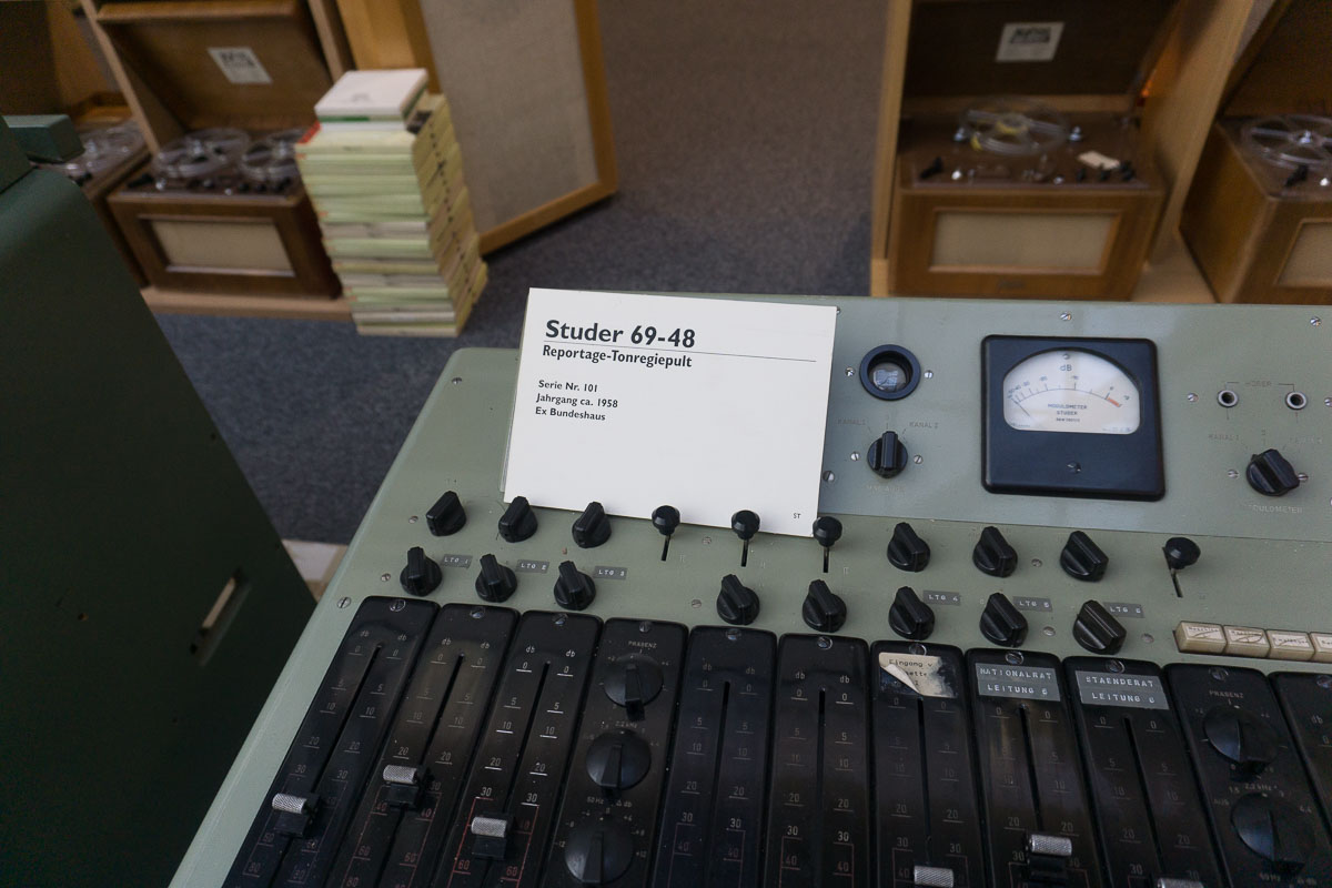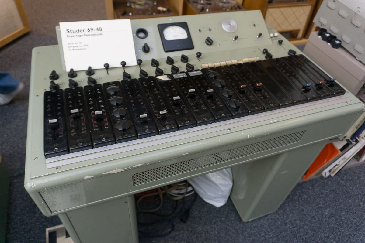 Der Großteil der Sammlung stammt aus dem Privatbesitz des langjährigen Sammlers Walter Stutz, einem glühenden Revox- und Studer-Enthusiasten. Über Jahrzehnte hinweg hat er mehr als 400 Geräte aus der ganzen Welt zusammengetragen und kann ganze Geschichten zu den Einzelstücken erzählen. Am Beispiel einiger Mischpulte veranschaulichte er den versammelten Besuchern, mit welchem Aufwand das Finden und Importieren der Ausstellungsstücke teilweise verbunden war.