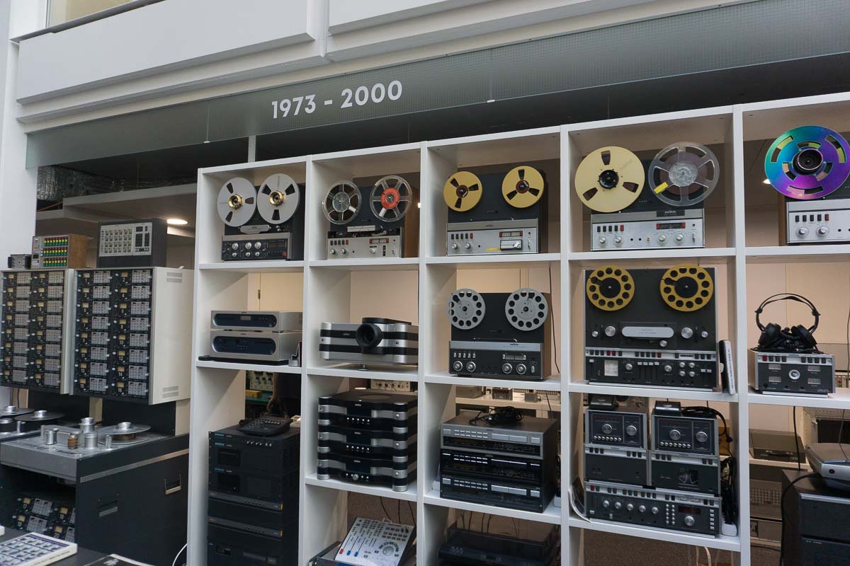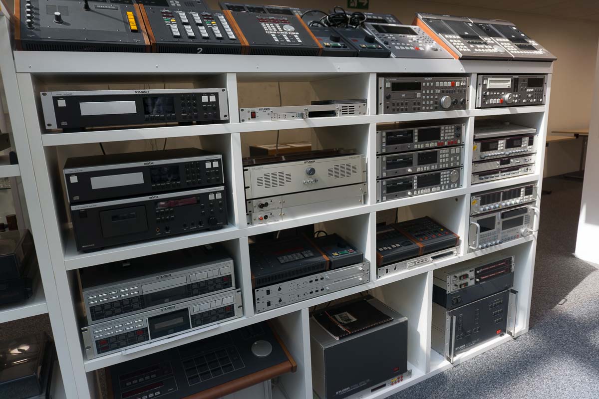 Beeindruckend ist dabei nicht nur die schiere Menge, sondern vor allem der Zustand der Exponate: Nach Auskunft von Walter Stutz sind rund 85 bis 90 Prozent der Sammlung funktionstüchtig und können vorgeführt werden. Die Ausstellung zeigt in der Folge Tonbandgeräte mit Viertelzoll-Band ebenso wie Maschinen mit 1- und 2-Zoll-Bändern, ergänzt um Verstärker, Lautsprecher, Kassettendecks, CD-Player und weiteres Home-HiFi-Equipment. Auch im professionellen Bereich ist alles vertreten – von kleinen mobilen Geräten bis hin zu mehreren meterlangen Mischpulten, wie sie einst in Rundfunkstudios zum Einsatz kamen. Studer nimmt hier naturgemäß einen großen Platz ein, denn die Geschichte beider Marken ist eng miteinander verbunden.