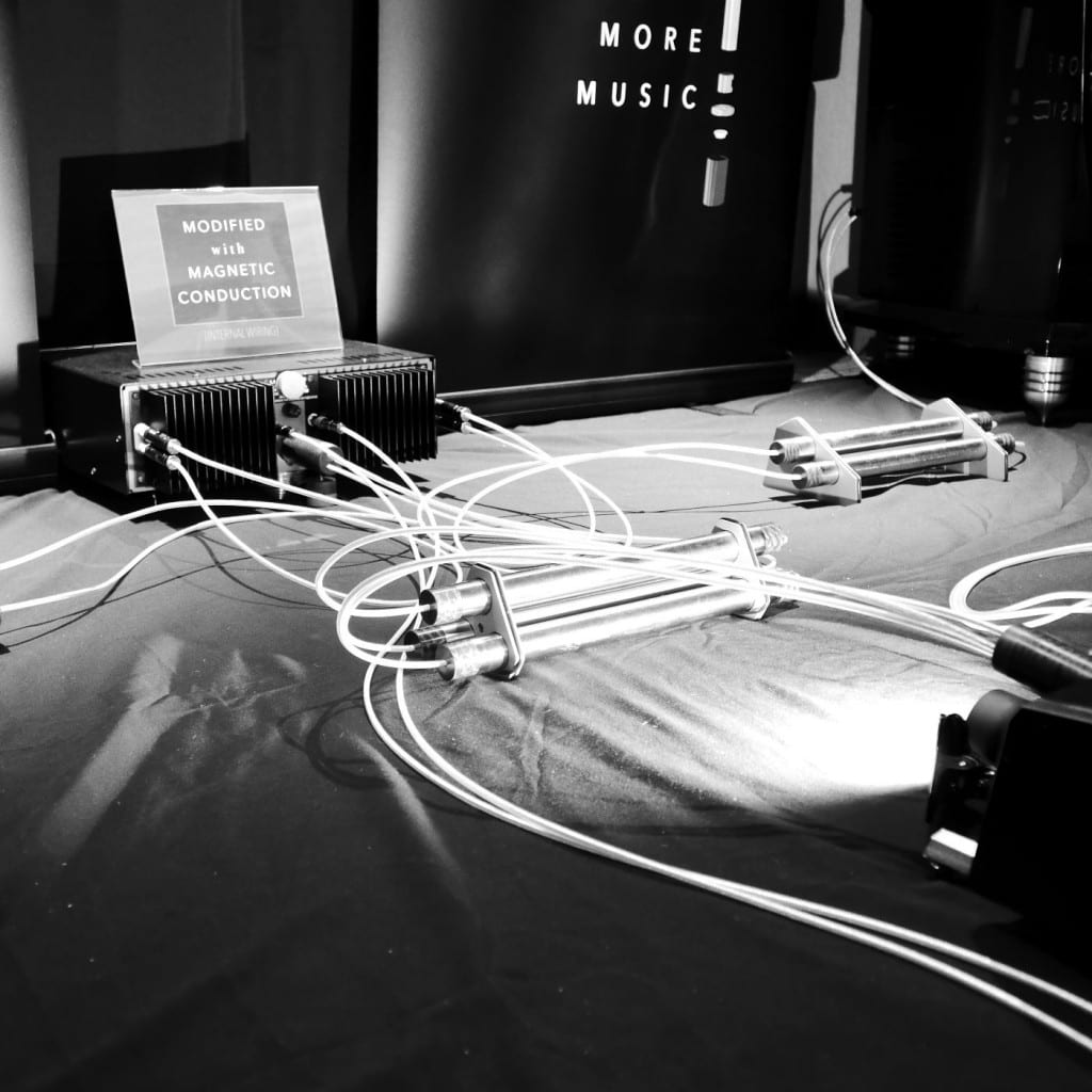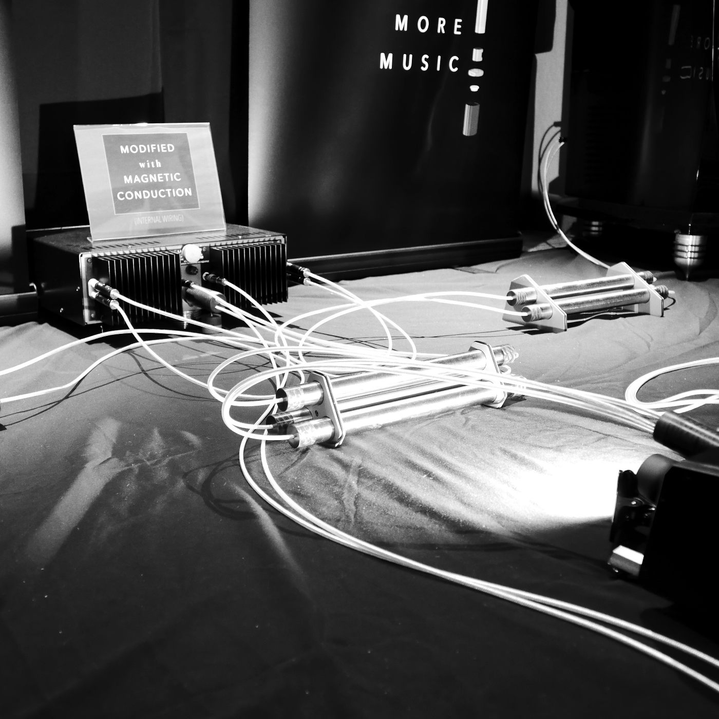 Last but not least geht der Preis für das seltsamste Produkt an „High Fidelity Cables“. Dort vertritt man die Meinung, dass Magnete im Signalweg dem guten Klang dienlich sind. Je mehr und je stärker, desto besser. Die Vorführung mit ihren Magnetkabeln war dann auch ganz gut, jedoch gab es leider keinen direkten Vergleich mit einem „normalen“ Kabel, was eine Einordnung schwierig macht. Nichtsdestotrotz hat Rick Schultz, der Man hinter den Kabeln, eine plausible Erklärung für die Richtigkeit seines Ansatzes, die leider nicht unmittelbar verständlich ist. Ein Thema, das sicher polarisiert. Wir bleiben dran und versuchen, den Dingen auf den Grund zu gehen.