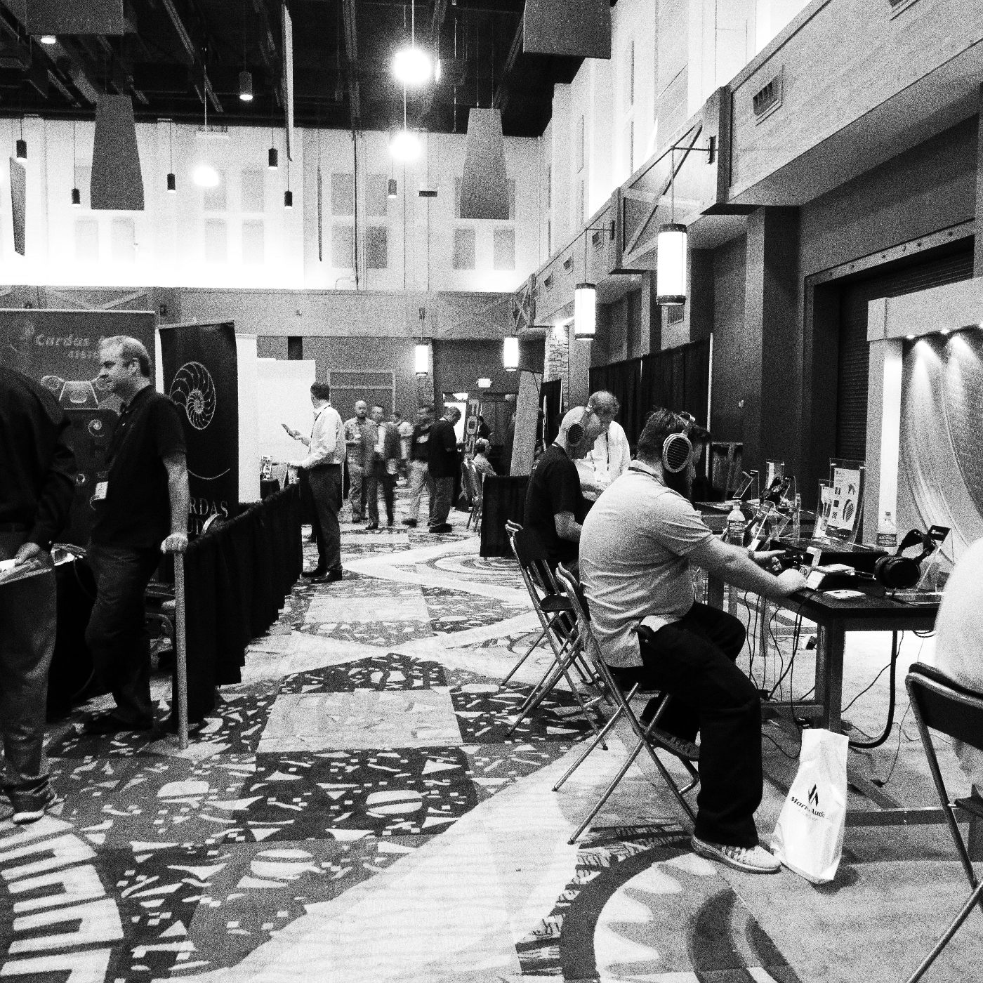 Die Messe fand, wie auch in den Jahren zuvor, wieder im Denver Marriott Tech Center, einem sehr großen Konferenz- und Veranstaltungshotel, statt. Es ist schwer auszumachen woran es liegt, aber Amerikaner scheinen die Farbe Beige sehr zu mögen. Im Hotels ist es die bestimmende Farbe. Teppiche, Wände, Decken, Lampenschirme, Gardinen und Vorhänge, Tagesdecken, der Schreibblock auf dem Zimmer, Passepartouts in Bilderrahmen, Türen, nicht zu vergessen das komplette Badezimmer, ja selbst die Glühbirnen leuchten nicht weiß, sondern beige. Das entschleunigt und wirkt irgendwie einlullend. Ist aber eigentlich egal, denn als Highender hat man per Definition die Kunst der selektiven Wahrnehmung perfektioniert, außerdem hilft diese optische Reizarmut, sich auf das Wesentliche zu konzentrieren.