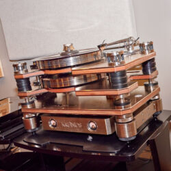Elsewhere at the show, the room most often spoken of was without doubt the massive Verity Audio room, fronted by their massive Monsalvat speaker and electronics system. The sound, in the handful of cuts I heard, was almost befitting the room’s price tag: big, bold, with dynamic capabilities north of Canada. That the system also looked the part was an additional bonus. Another highlight was Brian Ackerman’s must see and hear mix of Ypsilon and Wilson Benesch. The greek’s powerful, yet musical electronics mated perfectly to Wilson Benesch’s british roots: that Brian sells and imports both brands isn’t a surprise, though I admit that Wilson Benesch isn’t necessarily my cup of British 5 o’clock tea for two.