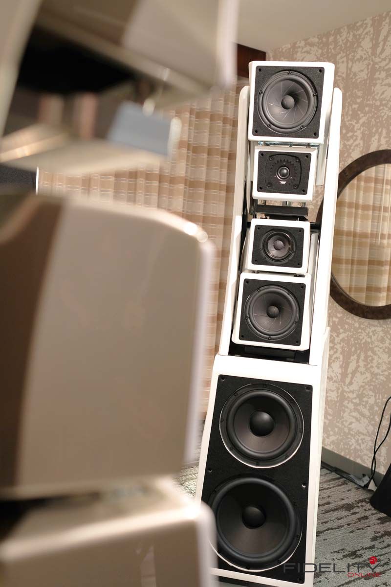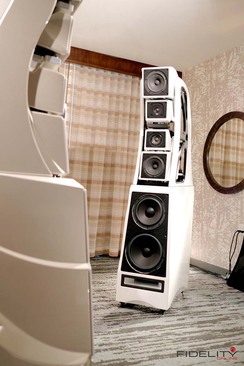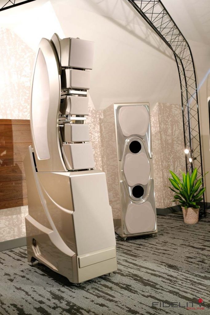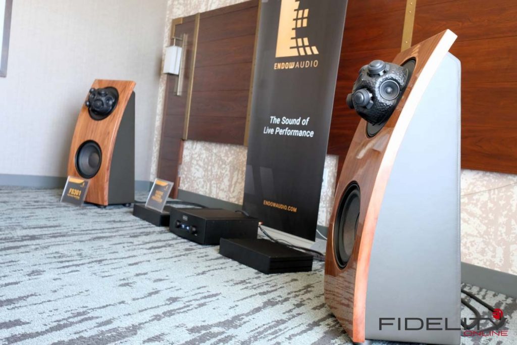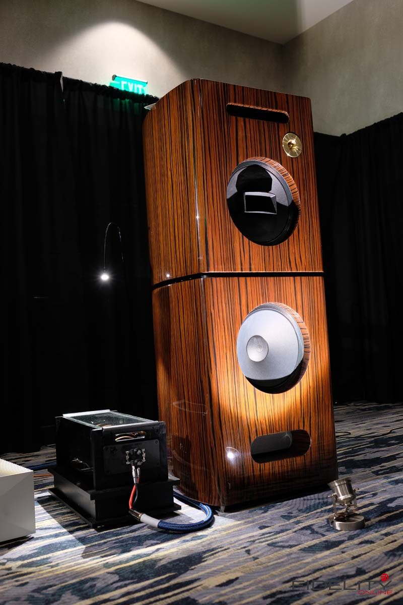 Endow Audio war mit einem, so wie sie es nennen, „Point-Array“ angereist. Dieses Point-Array bestand aus 10 Treibern, davon neun sichtbar und einer unsichtbar plus einem Basslautsprecher. Angesteuert wurde das alles von einem „Analog-Audio Processor“. Dabei handelte es ich aber lediglich um eine ausgelagerte Frequenzweiche. Die Überraschung: Es funktionierte. Ein großer, beinahe Cinemascopeartiger Klang flutete den Raum. Interessant war auch, dass es innerhalb eines sehr großzügigen Sweet-Spots eine echt definierte Soundstage gab.