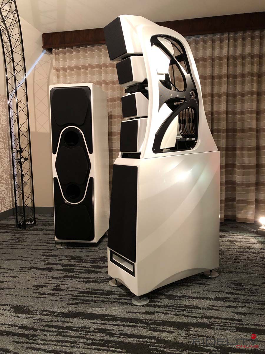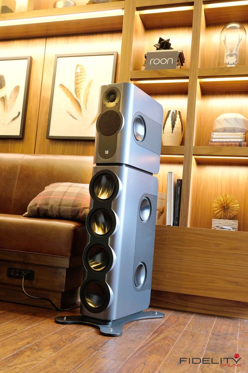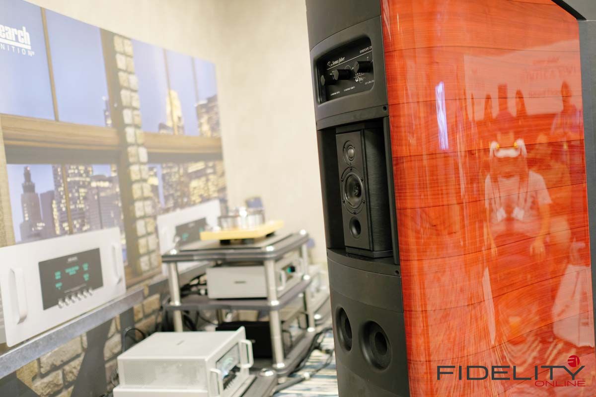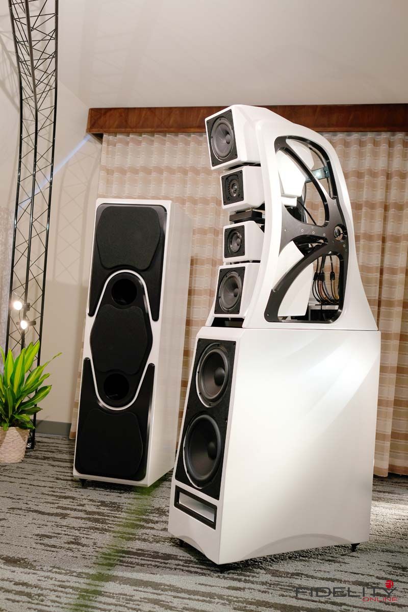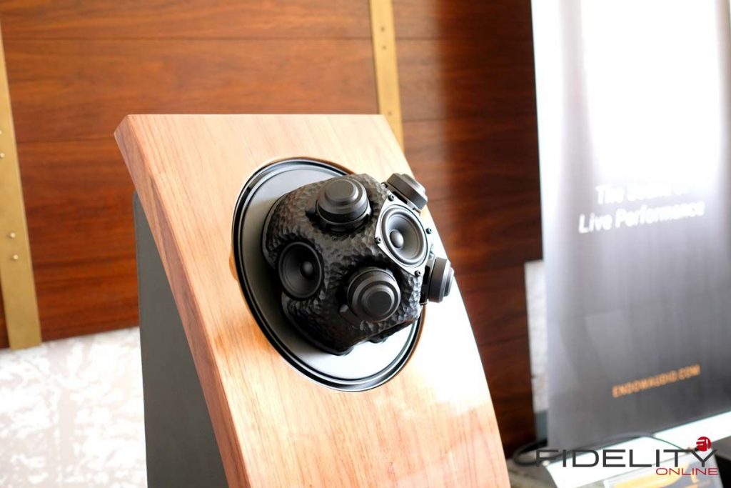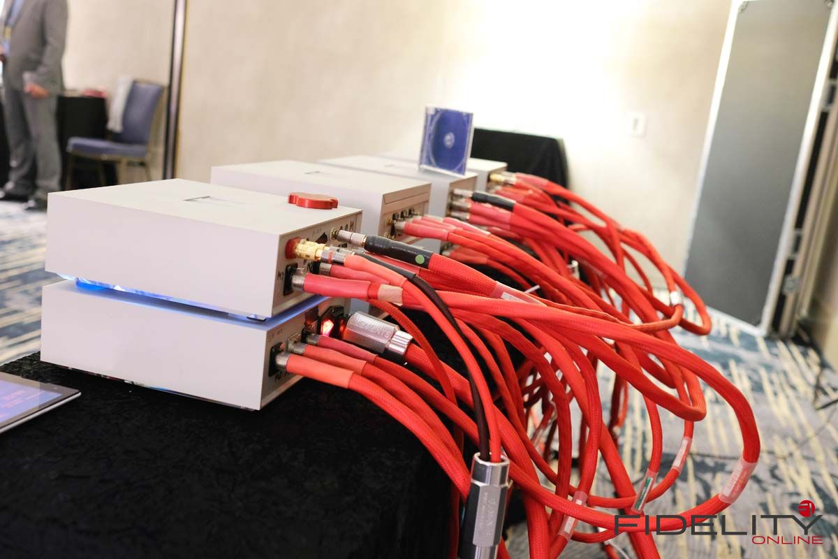 Endow Audio war mit einem, so wie sie es nennen, „Point-Array“ angereist. Dieses Point-Array bestand aus 10 Treibern, davon neun sichtbar und einer unsichtbar plus einem Basslautsprecher. Angesteuert wurde das alles von einem „Analog-Audio Processor“. Dabei handelte es ich aber lediglich um eine ausgelagerte Frequenzweiche. Die Überraschung: Es funktionierte. Ein großer, beinahe Cinemascopeartiger Klang flutete den Raum. Interessant war auch, dass es innerhalb eines sehr großzügigen Sweet-Spots eine echt definierte Soundstage gab.