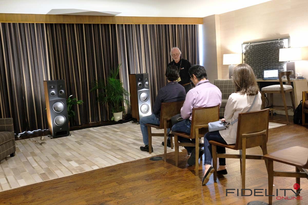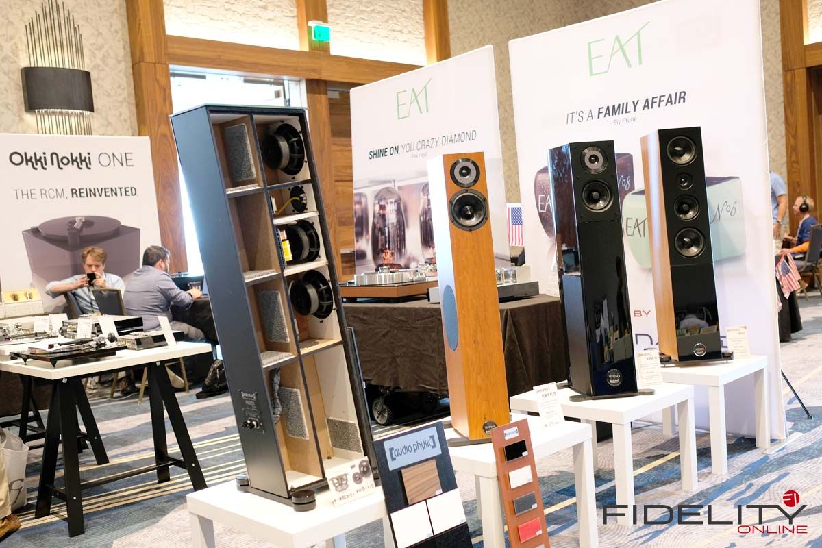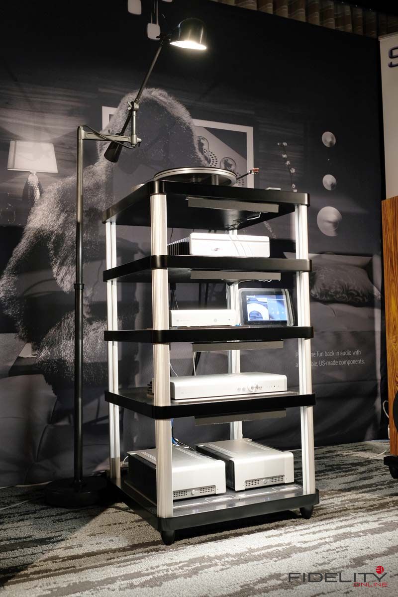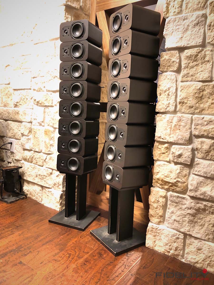 Endow Audio war mit einem, so wie sie es nennen, „Point-Array“ angereist. Dieses Point-Array bestand aus 10 Treibern, davon neun sichtbar und einer unsichtbar plus einem Basslautsprecher. Angesteuert wurde das alles von einem „Analog-Audio Processor“. Dabei handelte es ich aber lediglich um eine ausgelagerte Frequenzweiche. Die Überraschung: Es funktionierte. Ein großer, beinahe Cinemascopeartiger Klang flutete den Raum. Interessant war auch, dass es innerhalb eines sehr großzügigen Sweet-Spots eine echt definierte Soundstage gab.