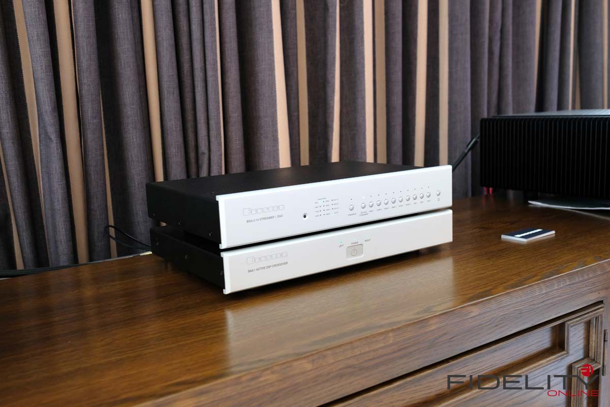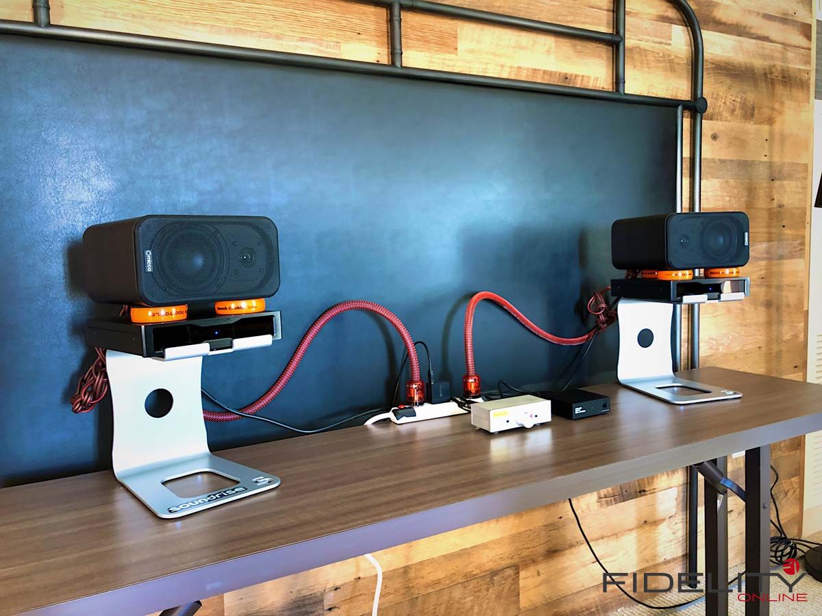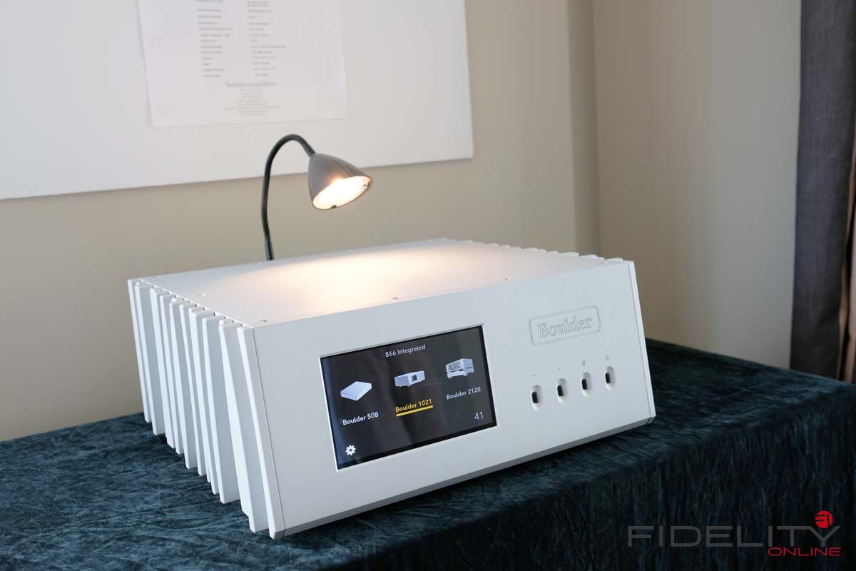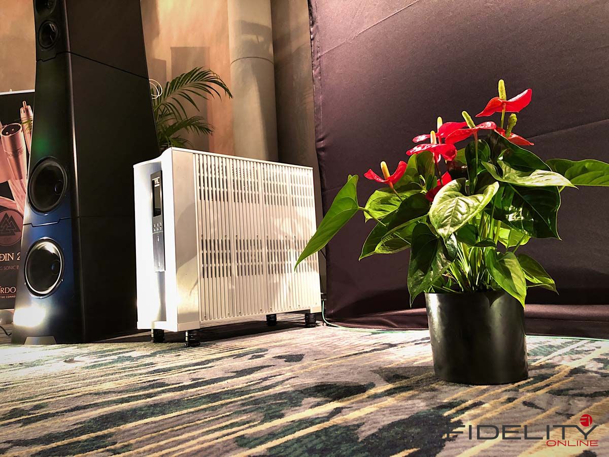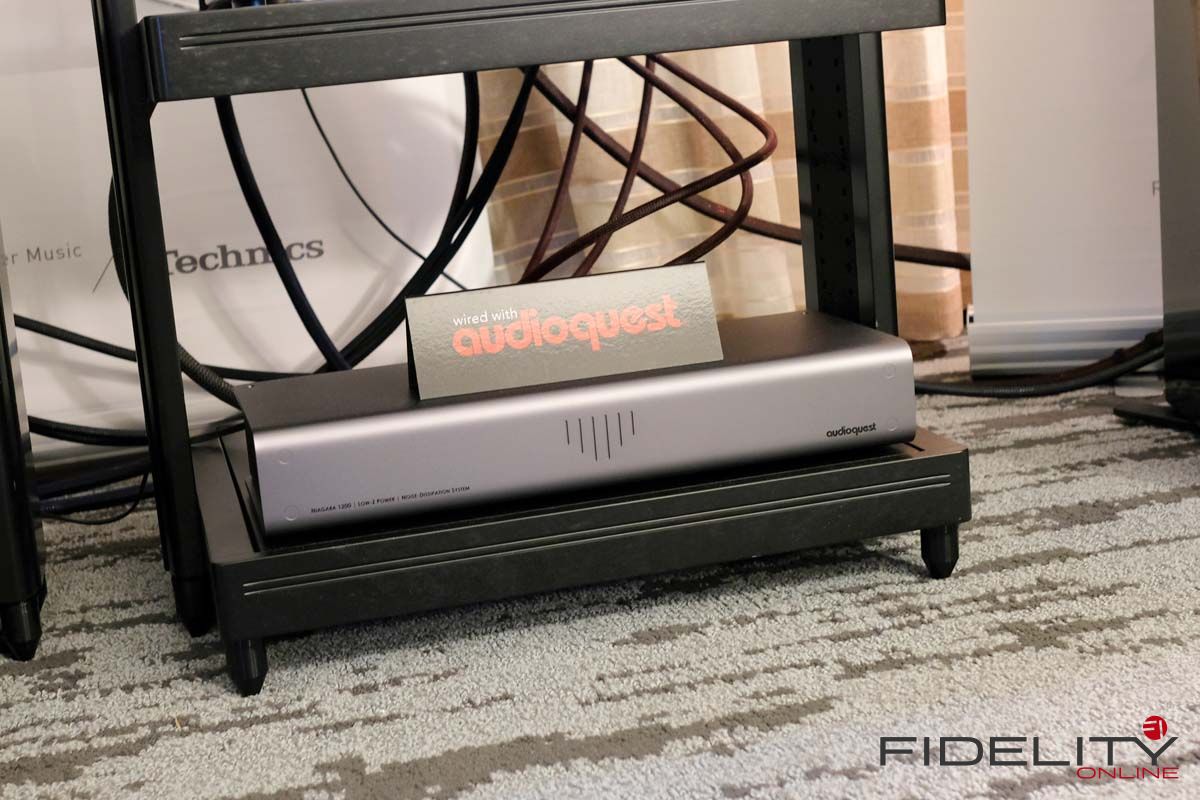 Endow Audio war mit einem, so wie sie es nennen, „Point-Array“ angereist. Dieses Point-Array bestand aus 10 Treibern, davon neun sichtbar und einer unsichtbar plus einem Basslautsprecher. Angesteuert wurde das alles von einem „Analog-Audio Processor“. Dabei handelte es ich aber lediglich um eine ausgelagerte Frequenzweiche. Die Überraschung: Es funktionierte. Ein großer, beinahe Cinemascopeartiger Klang flutete den Raum. Interessant war auch, dass es innerhalb eines sehr großzügigen Sweet-Spots eine echt definierte Soundstage gab.