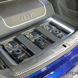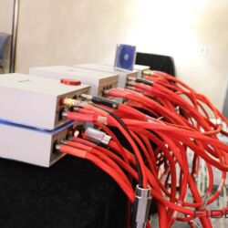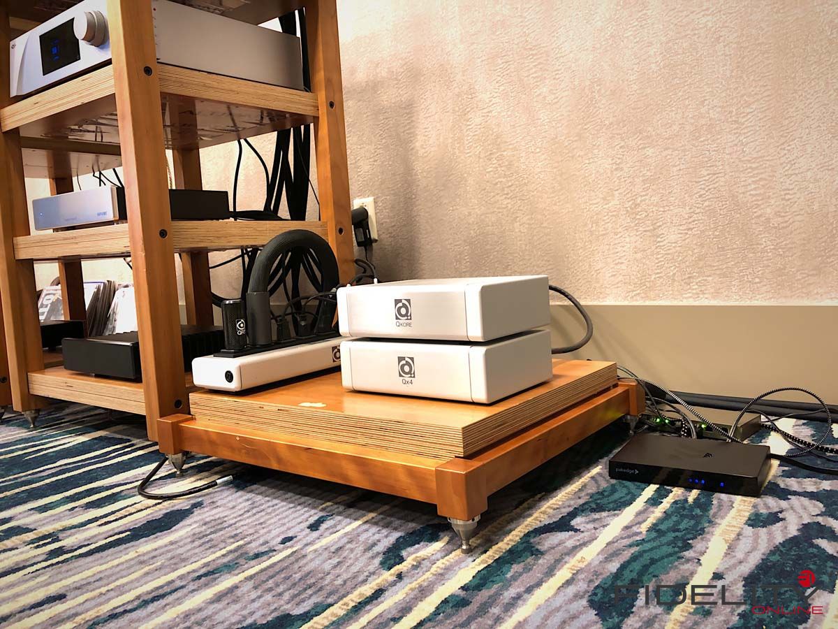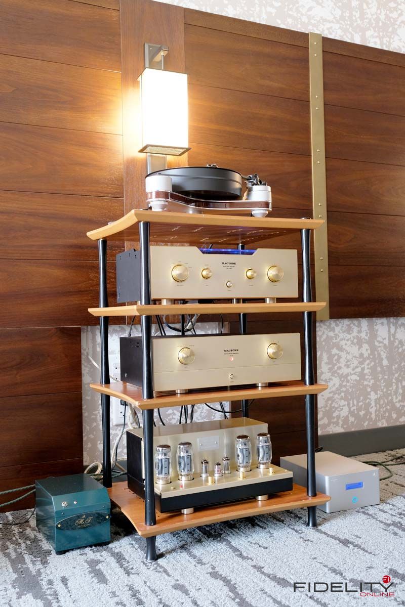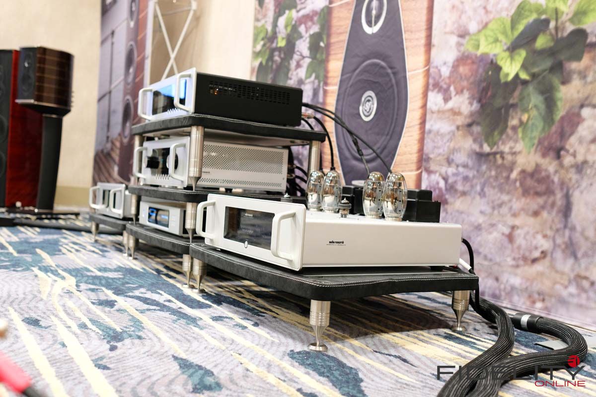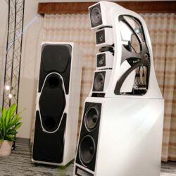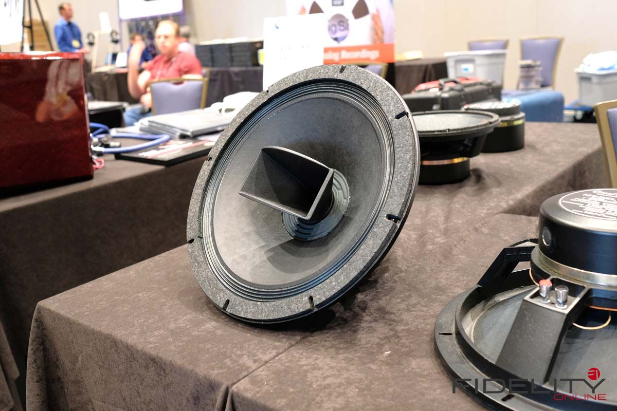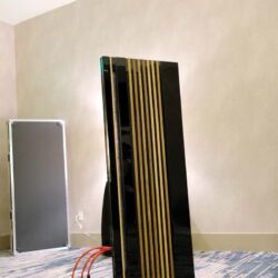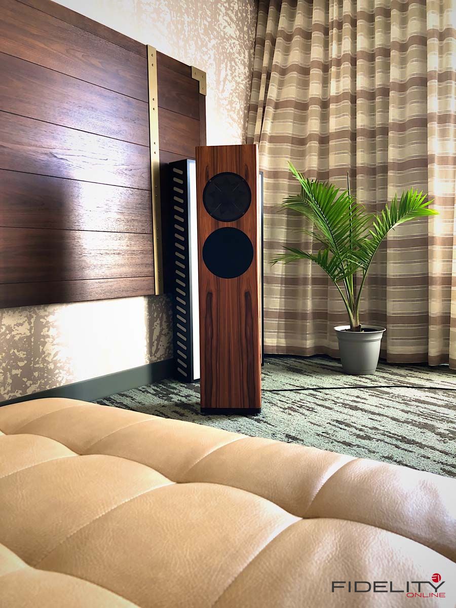 Ein hochgradig interessantes Setup war im Raum von MC Audiotech zu bestaunen. Obgleich das Frontend von Pass sicherlich nicht von schlechten Eltern war, waren es doch die Lautsprecher, die ins Auge stachen. Der Entwickler Paul W. Paddock (Entwickler des einzigartigen Lineum-Treibers und Inhaber von einer Vielzahl von Patenten rund um das Thema Lautsprecher) zeigte dort einen großen Lautsprecher, bestehend aus einem 10-Teiligen Biegewellenwandler-Element in Verbindung mit einem massiven Ripol-Bass. Das System verströmte ein unerwartetes Maß an Leichtigkeit, leistete sich aber kleine Schwächen bei der Abbildung.