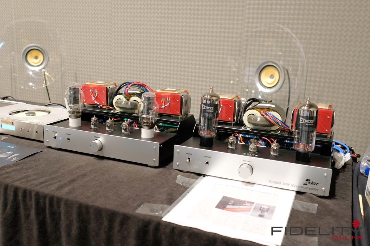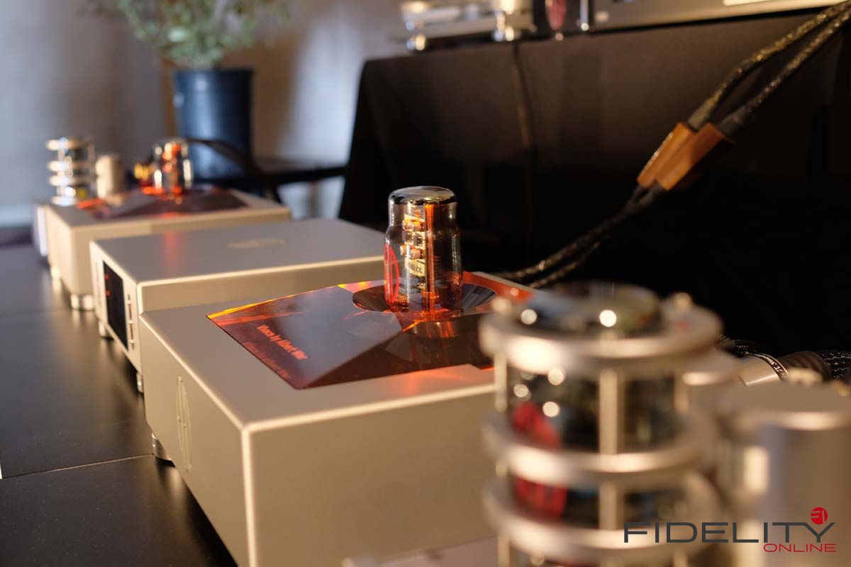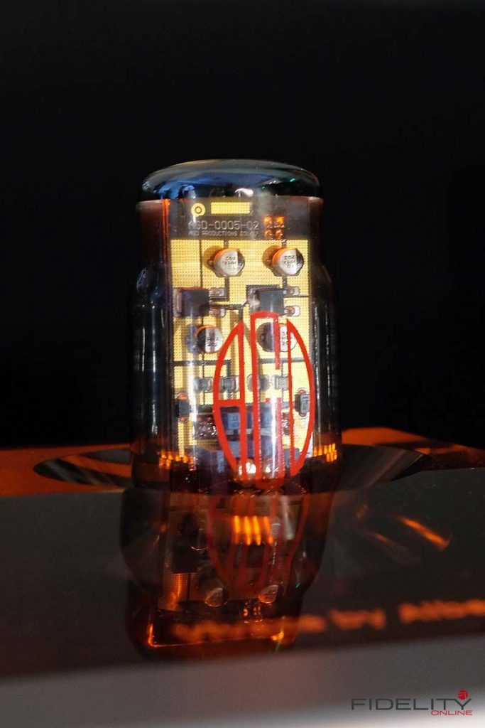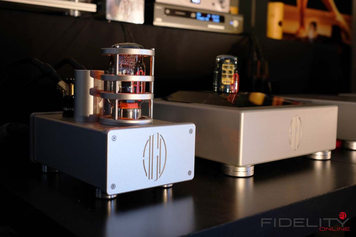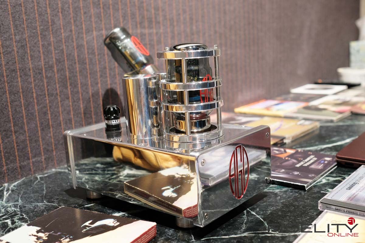 Einen außerordentlich ungewöhnlichen Verstärker fanden wir bei AGD. Dabei handelt es sich um einen Gallium Nitrit Schaltverstärker, der in eine (so wie es aussieht KT) Röhre eingebaut ist. Zunächst konnte man das als Spielerei abtun, aber der Klang war betörend schön und die Optik für einen Schaltverstärker einzigartig.