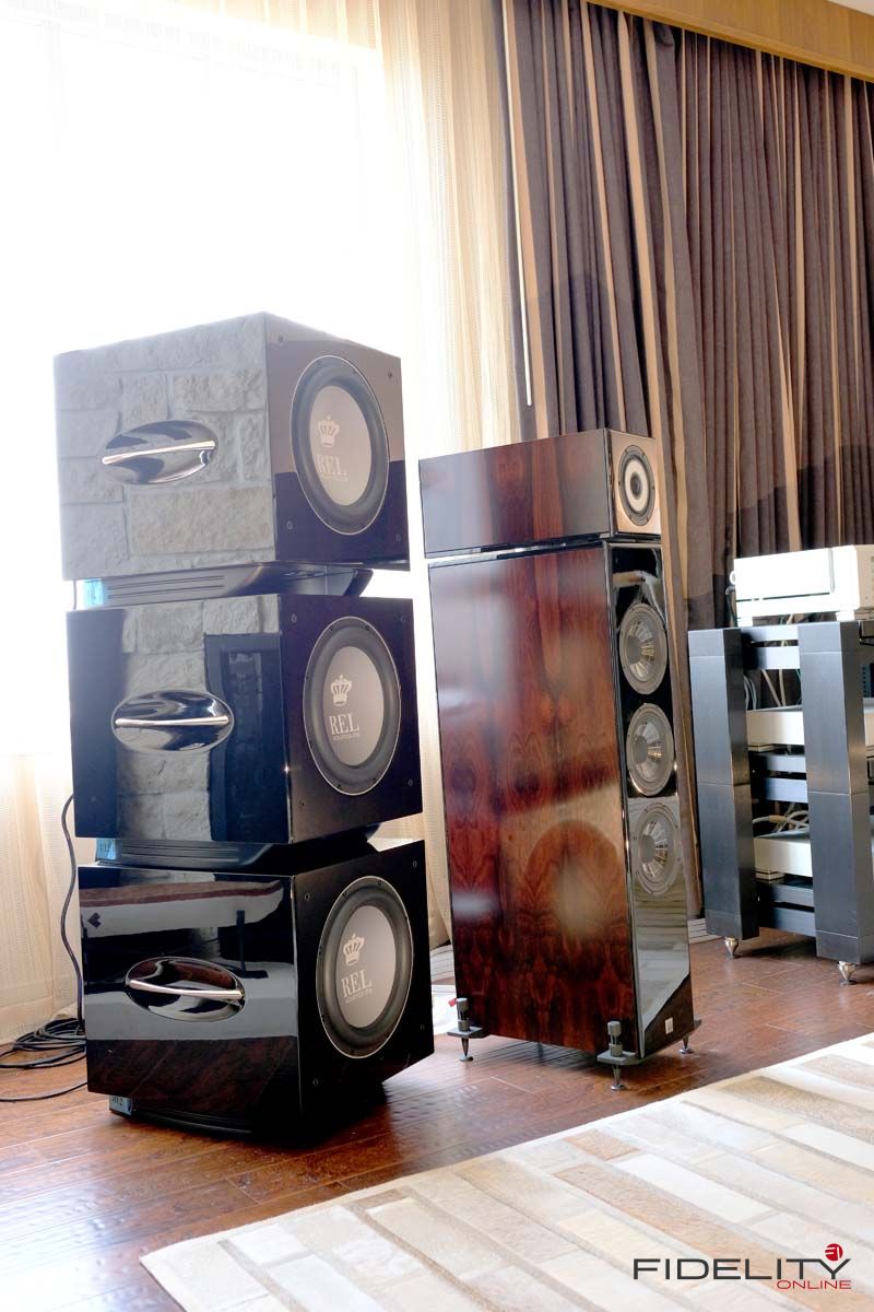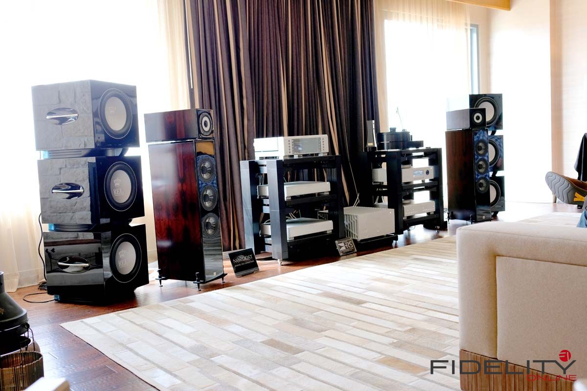 Nun aber zur Messe selbst und da wollen wir gleich mit der Tür in Haus fallen: „Best Sound of Show“ war für uns eindeutig Wilson Audio mit einem auf den ersten Blick gar nicht so spektakulärem Setup. Präsentiert wurde der Lautsprecher Sasha DAW in Verbindung mit einem Paar Watchdog Subwoofern, angetrieben von gewaltigen VTL S-400 II Reference Stereo Röhrenamps. Der Clou an diesem Setup war die neue aktive und rein analog aufgebaute Frequenzweiche „Active XO“, die Wilson Audio „Dual Subwoofer Active Crossover“ nennt. Das hierdurch aktivierte System war ein absoluter Blueprint für eine perfekte Integration und die Sinnhaftigkeit von Subwoofern, wobei die Kellergeister nicht etwa mehr Bass, sondern vor allem fühlbar mehr Raum und Authentizität ins Geschehen brachten. Diejenigen Besucher, die leichtsinnigerweise mit dem Wilson Audio Raum im 11. Stockwerk des Hotels anfingen, waren für den Rest der Messe verdorben. Das Wilson Audio Setup war in seiner Gesamtheit nicht zu schlagen.