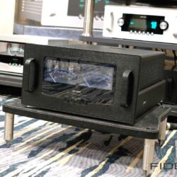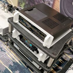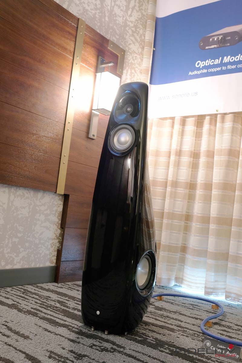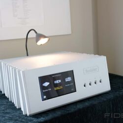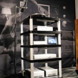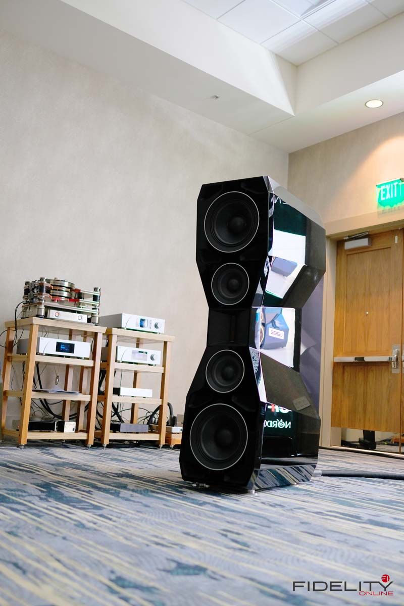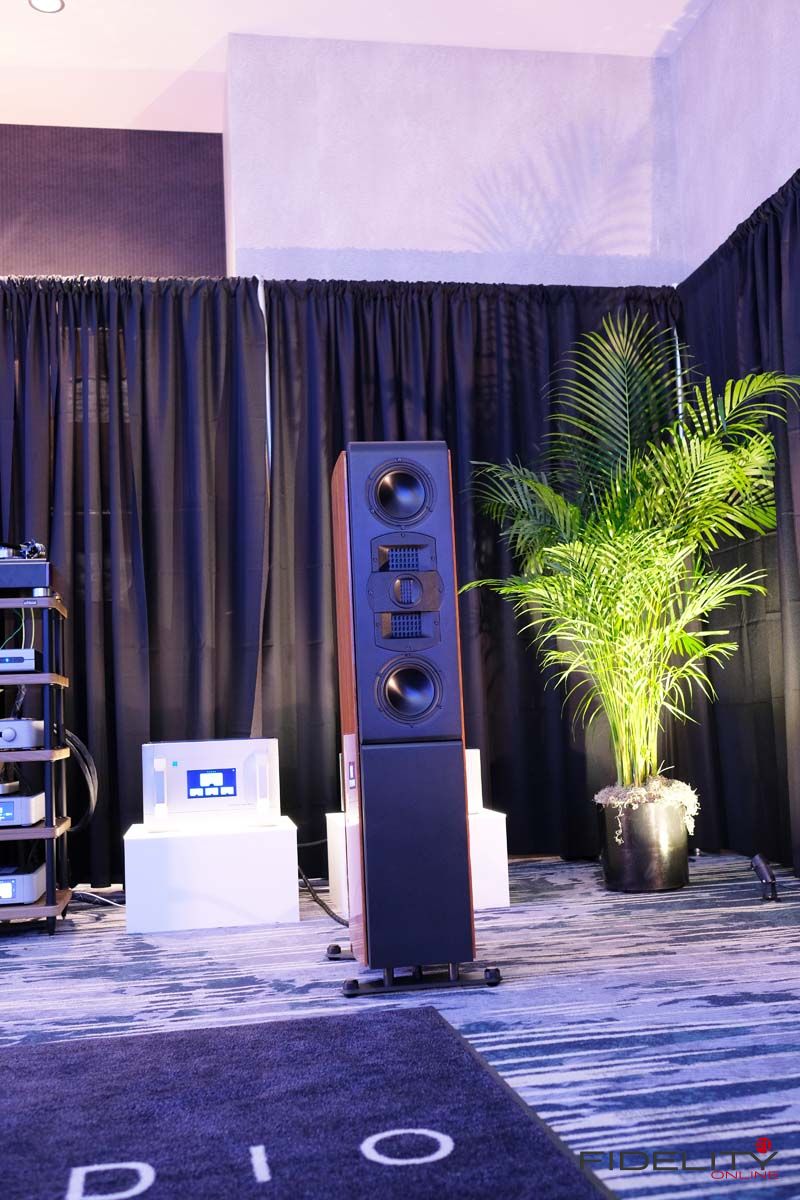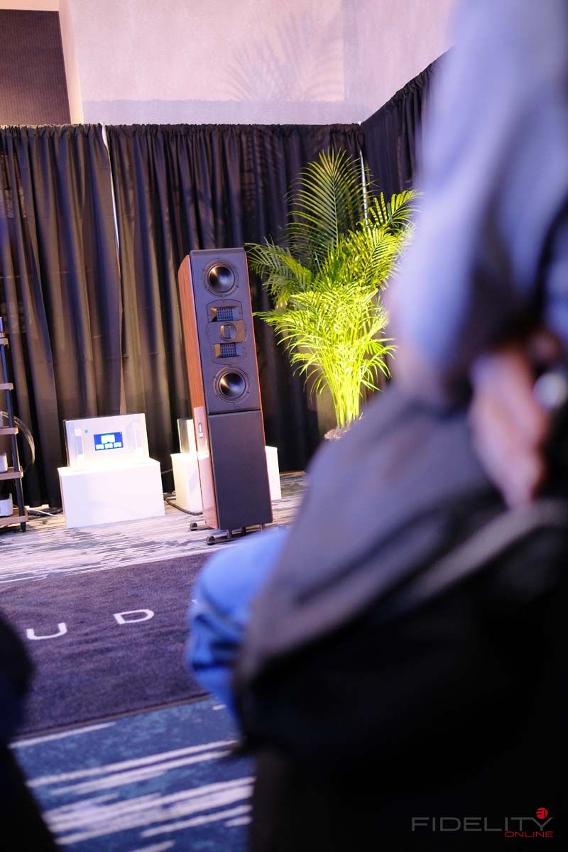 Einen Schallwandler gab es auch bei PS Audio zu sehen. Der Name AN3 (AN steht für Arnie Nudel, der verstorbenen Audio Legende und engem Freund von PS Audio Chef Paul McGowan). Die Bezeichnung ist trotzdem verwirrend, denn die AN3 ist ein teilaktiver 4-Wege Lautsprecher, der somit eigentlich AN4 heißen könnte. Die 3 steht aber für den dritten Typ der Serie. Auf die Nummer 1, die AN1, dürfen wir sehr gespannt sein, denn wie wir aus erster Hand erfahren haben, arbeitet PS Audio an einem großen mehrteiligen Array, ähnlich der legendären IRS von Infinity. Die Mittel- und Hochtoneinheit der AN3 ist im übrigen eine Weiterentwicklung der bestens beleumundeten Magnetostaten von Bohlender & Graebener. Der Lautsprecher klang auffallend differenziert, ohne aber anämische Tendenzen zu zeigen. Im Gegenteil: Wenn es zur Sache ging, machten eher die Zuhörer schlapp, als der Lautsprecher. Sehr angenehmer Klang und unbedingt empfehlenswert.