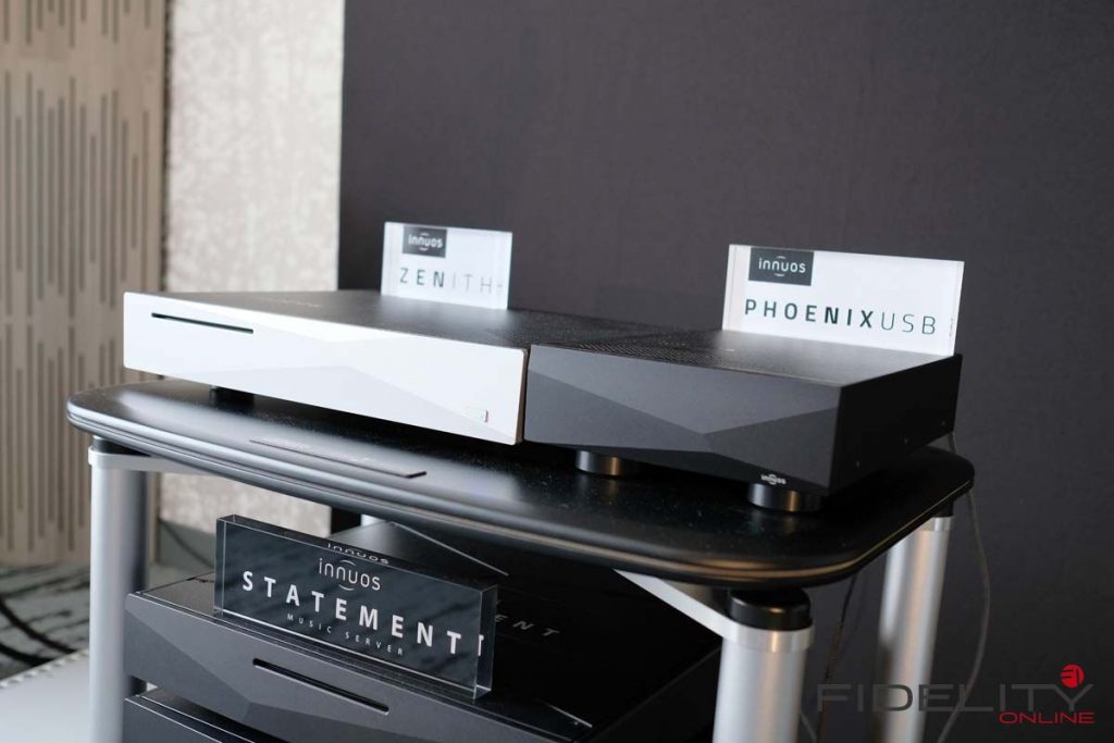 Innuos zeigte den neuen Re-Clocker „Phoenix USB“, der dem hauseigenen Music Server „Statement“ entstammt. An einem „Zenith“ Musikserver konnte man am Vorher/Nachher-Effekt sehr eindeutig hören, wie wichtig ein sauberer Takt für die Widergabe ist.