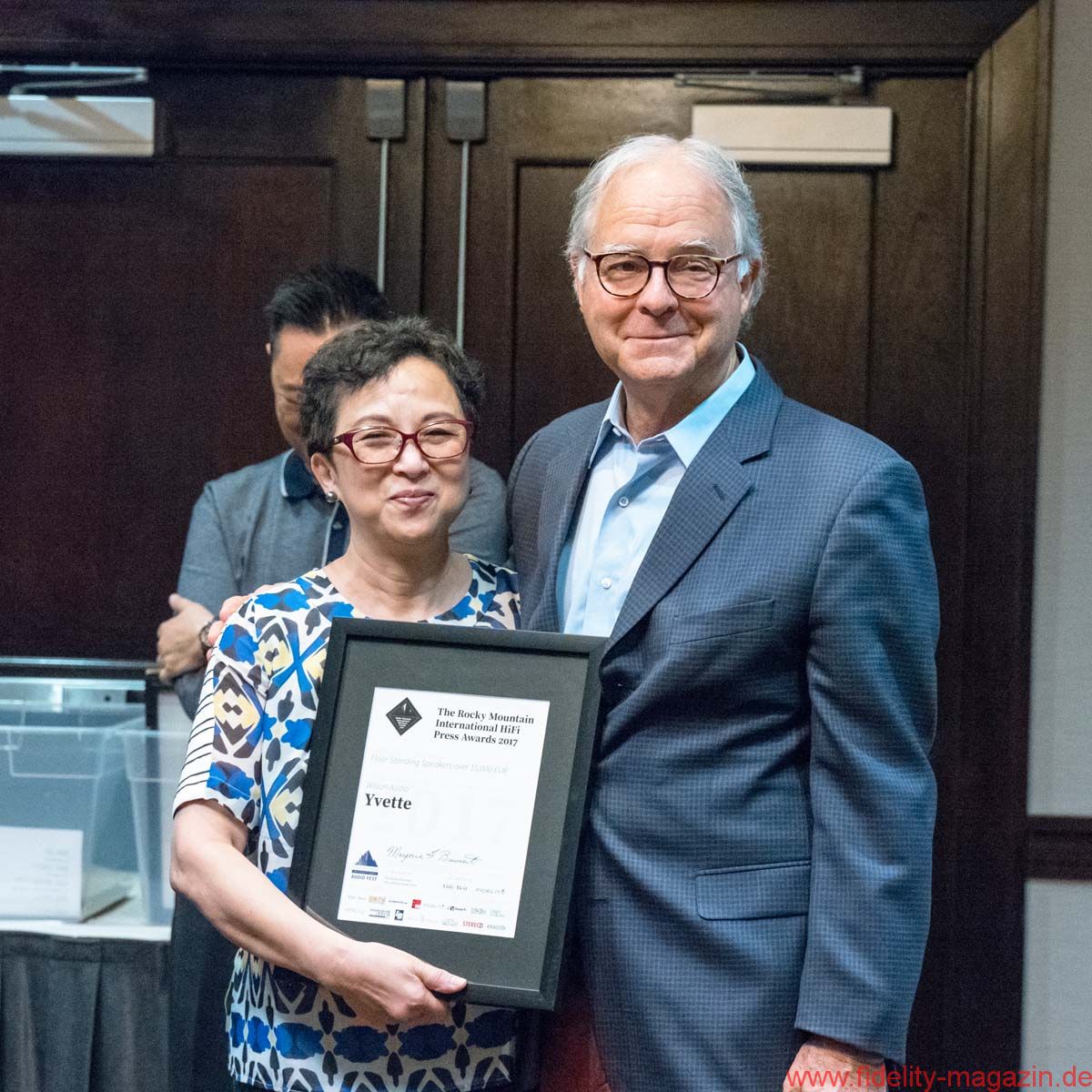 Im Rahmen einer feierlichen Abendgala wurden dann diese „OSCARS“ den Gewinnern durch den Veranstalter von RIHPA, in Person von Marjorie Baumert und den zwei Co-Producern „The Audio Beat“ und „FIDELITY“ und dem Panel-Mitglied Audiotechnique aus Hong Kong, übergeben.