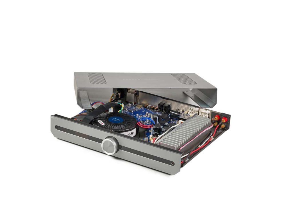 Der Attessa-Amp erzeugt mit seinen 130 Watt pro Kanal (4 Ohm) ein stattliches Fundament und besitzt beeindruckende Stabilität und Kontrolle über die tiefen Frequenzen. Technisch bedienten sich die Briten bei ihrer größeren Caspian-Serie, von der sich die Entwickler die symmetrische Vorstufensektion borgten. Die Endstufen können sich auf die Reserven eines großen Ringkerntrafos verlassen, der dem flachen Verstärker sein erstaunlich hohes Gesamtgewicht von fast elf Kilogramm verleiht. Neben der herrlich differenzierten Bühne fiel mir als erstes die samtige Grundabstimmung mit ihrem sanften Hauch von Loudness auf, die besonders bei niedrigen Hörpegeln Wärme und Volumen in die Wiedergabe bringt, ohne sich jedoch in den Vordergrund zu drängen. Dieser Kniff in der Abstimmung macht sich bei „modern“ abgemischter Musik natürlich hervorragend, störte mich aber auch bei älteren Produktionen oder audiophilen Aufnahmen nicht weiter. Trotz des leichten Schubs im Bassbereich verschwimmen die Transienten nicht wie bei mancher echten Loudness-Schaltung. Die tiefsten Lagen bleiben stets sauber und mischen sich phasenrichtig und mit solidem Timing unter die übrigen Frequenzen. Der Amp hat einfach Druck, und das macht unglaublichen Spaß beim Hören. Egal ob Smooth-Jazz oder Hardrock, die Musik gerät immer stimmig, da die Balance auch am anderen Ende des Spektrums passt. Der Hochton besitzt Strahlkraft, tönt insgesamt aber weich und angenehm, vor allem in Verbindung mit den Silver-100-Wandlern.