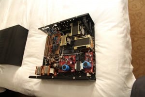 Auf der nahezu parallel im Marriott-Hotel stattfindenden Hifideluxe, die sich nicht nur im Vorfeld wieder einmal nahezu „unsichtbar“ präsentierte, begeisterte mich ein völlig abgefahrener, vermutlich nie in Serie gehender DAC-Prototyp von Audio Note. Statt Wandlerchip kam hier ein passives, penibelst ausgemessenes Widerstandsnetzwerk zum Einsatz, und tatsächlich gab’s hier Musik, Musik, Musik zu hören – und zwar über ein absolut bezahlbares Set-up.