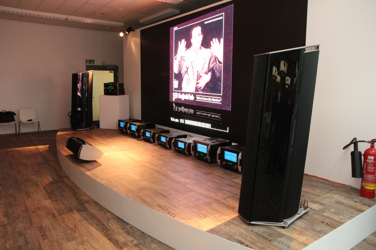 Wenn doch nur die allgemeine Musikauswahl ein wenig, sagen wir: mutiger wäre. In puncto Demo-Tracks schwächeln sehr viele Aussteller enorm, nur wenige der Vorführenden trauen sich an „anspruchsvollere“ Titel heran; es herrschte fast immer lauer Mainstream. Ein Tiefpunkt in diesem Jahr war beispielsweise die Demo des neuen Mark-Levinson-Vollverstärkers durch den Chefentwickler, der seine angestaubten Klangbeispiele zwar bis aufs Zehntel-dB exakt anglich, dann aber jeweils mittendrin im noch laufenden Track die Stopptaste betätigte. Großes Kino? Buh! Und kein Einzelfall. Zum Glück kann ich auch positive Ausnahmen vermelden, von den gigantischen Statement-Amps von Naim am Focal-Topmodell über die kompakte Aktivbox von Progressive Audio und die (kleinere) Living-Voice-Installation bis hin zu den wirklich verblüffenden Superminis von Boenicke Audio und Reimyo. Es war dann doch immer wieder spannend.