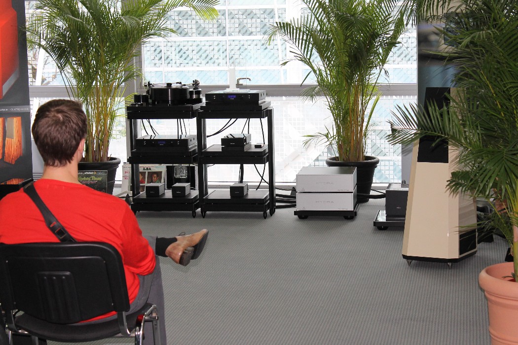 Optimistisch bin ich dagegen bei einem nahe liegenden Geschäftsmodell. Wäre ich eine Bank, so hätte ich einen Messestand gebucht. Um Kredite und Leasing feilzubieten. Ein paar Preise haben mich schockiert ob des dafür Gebotenen, ein paar andere Zahlen lösten befriedigtes Grinsen aus. So nichtlinear ist die (HiFi-) Welt – das macht Spass, der Kunde bleibt König. Amüsant auch, dass wieder pünktlich zur Veranstaltung einige UFOs gelandet waren, eins von den Dingern sah aus wie ein Ersatzteil für einen Transwarp-Antrieb. Erstaunlich, wo fantasievolle Importeure überall einkaufen, während die NASA noch mit russischer NOS-Technik zur Raumstation juckelt. Apropos Technik: Gewisse EU-Vorschriften zum “Inverkehrbringen” von Elektrischem, respektive einige dazu gehörige Sicherheitsstandards, sind bekanntermaßen ja nur eine Luftnummer der Brüsseler Bürokratie, von der man, sofern man aus anderen Galaxien stammt, natürlich noch nie etwas gehört hat. “Ground Lift” bedeutet nur so als kleines Beispiel übrigens nicht, den Schutzleiter mit der Kohlendioxid-geschwängerten Luft unseres Heimatplaneten zu verbinden. Gemischte Gefühle bekommt unsereins auch ob der Ankündigung, in Zukunft noch mehr Bild auf die Messe zu bringen. Für mich ist (Ton) genug, für andere ich weiss nicht … Aber bei Sony sah ich einen Fernseher mit galaktischem Bild, womöglich schon jenseits von HD. Ach ja, HD: Spricht man mit Insidern, so scheint 24/96 ganz pragmatisch schon überirdisch genug zu sein. Aber am Horizont ist oberhalb von 24/192 bereits DSD-Streaming zu sehen, was wieder neue Hardware fällig werden lässt. Und dann sollte es auch gut sein. Erinnern wir uns an die kollabierte Highend-Heimkino-Branche, die es mit gefühlt monatlich einem neuen Tonformat schaffte, ihrem Equipment so blitzartig Vintage-Status zu verleihen, dass Geld verbrennen länger gedauert hätte.