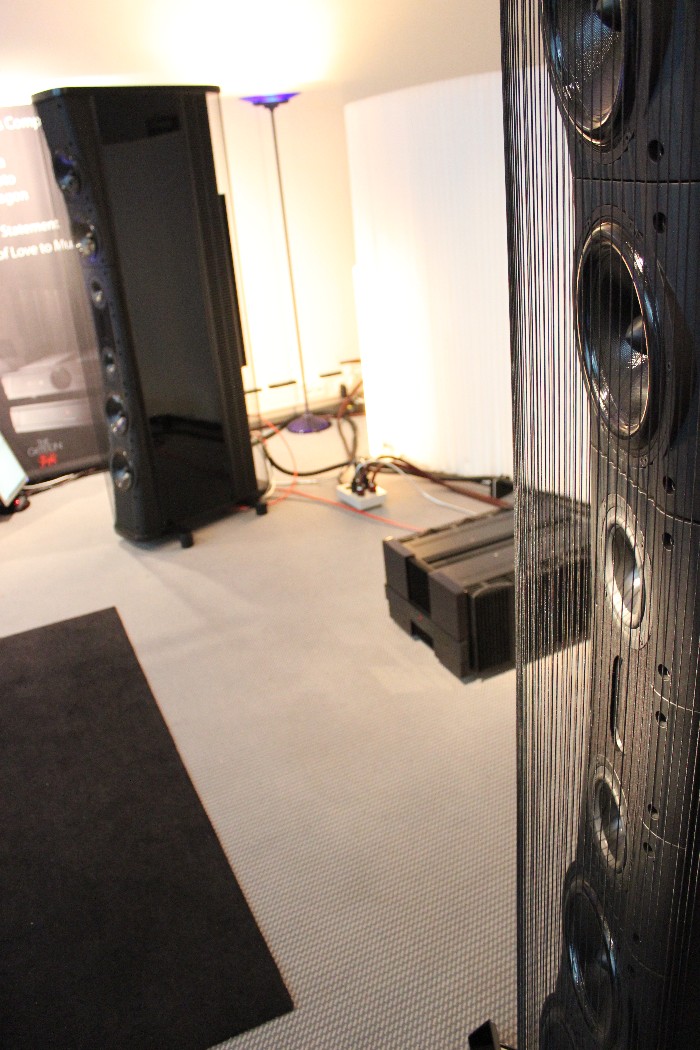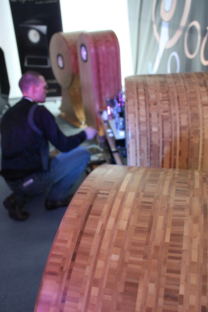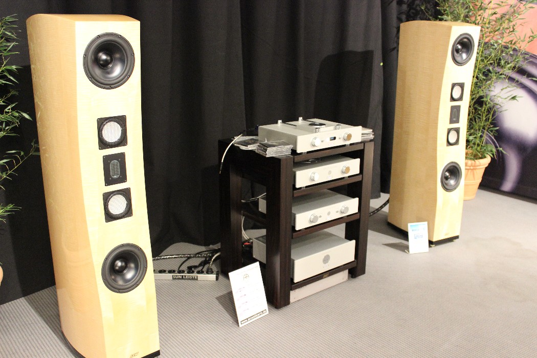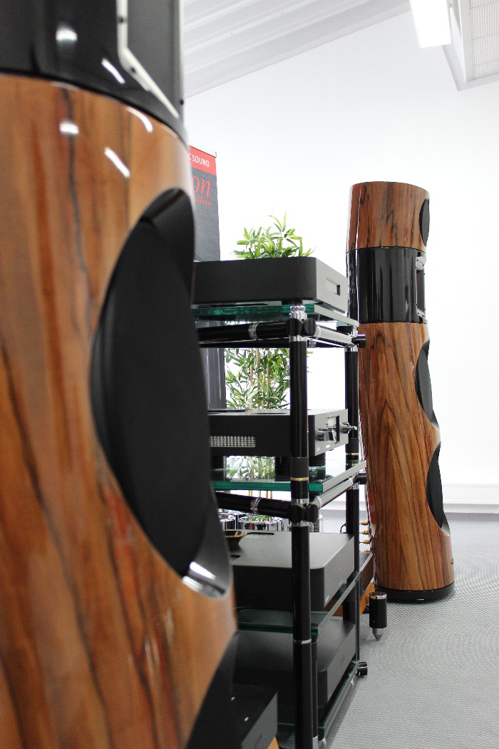 Aber auch für deutlich kleinere Münze sind Aha-Erlebnisse möglich. Zum Beispiel mit den Prototypen der neuen Lausprecher der Lavardin-Tocherfirma Lecontoure: Die ab etwa 3000 Euro pro Paar erhältliche Zylinderförmige stand direkt vor der Rückwand, verhöhnte deren Existenz akustisch aber beinahe ebenso vollständig wie die Living Voice ihr Volumen. Wie das Kunststück technisch erreicht wird, darüber schwieg sich der Entwickler Jean-Christophe Crozel aus, betonte aber wiederholt die große Wichtigkeit von perfekter Phasentreue.