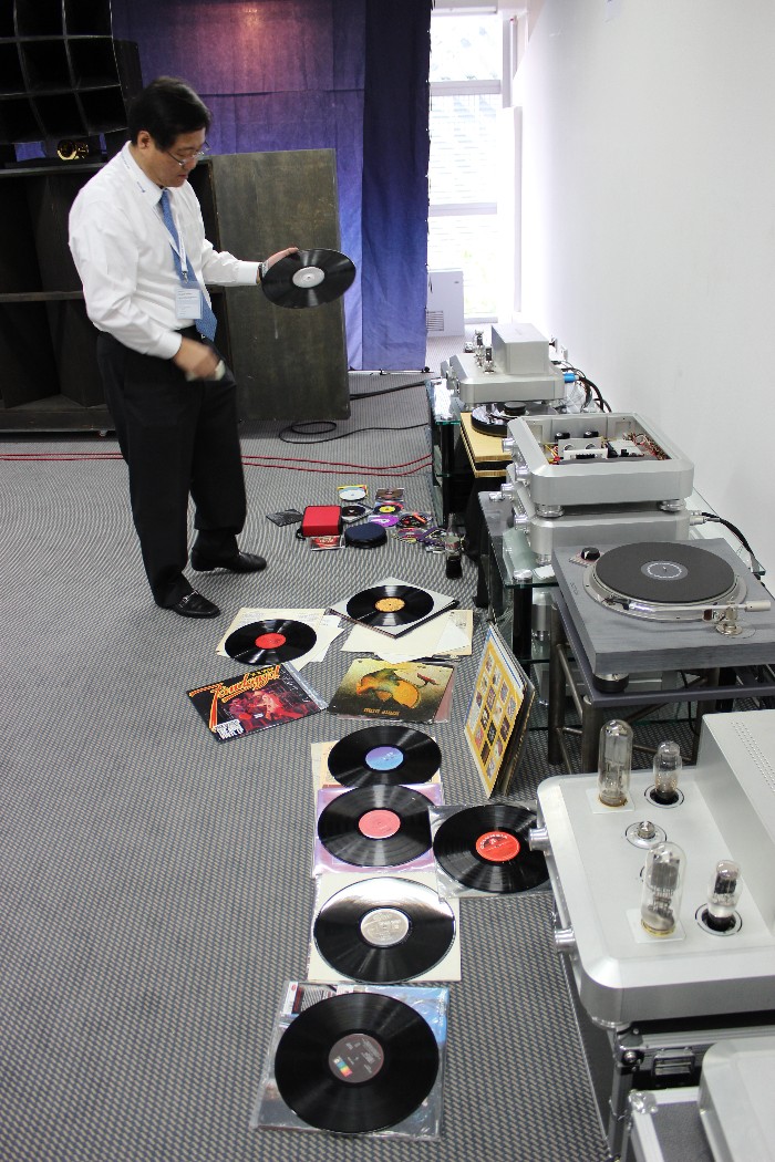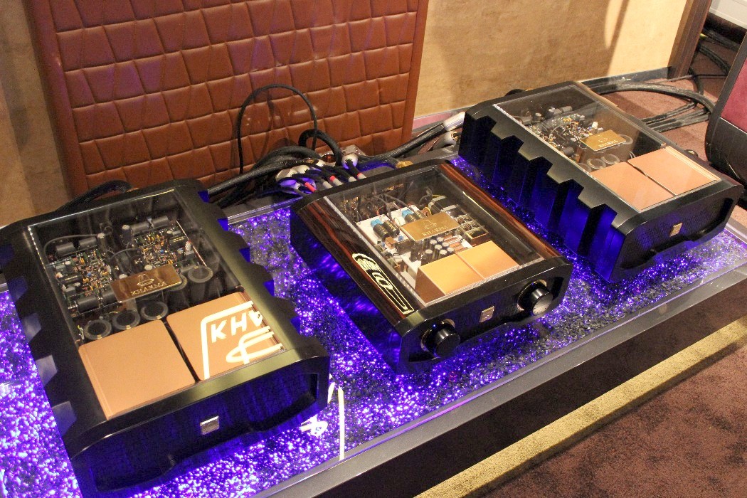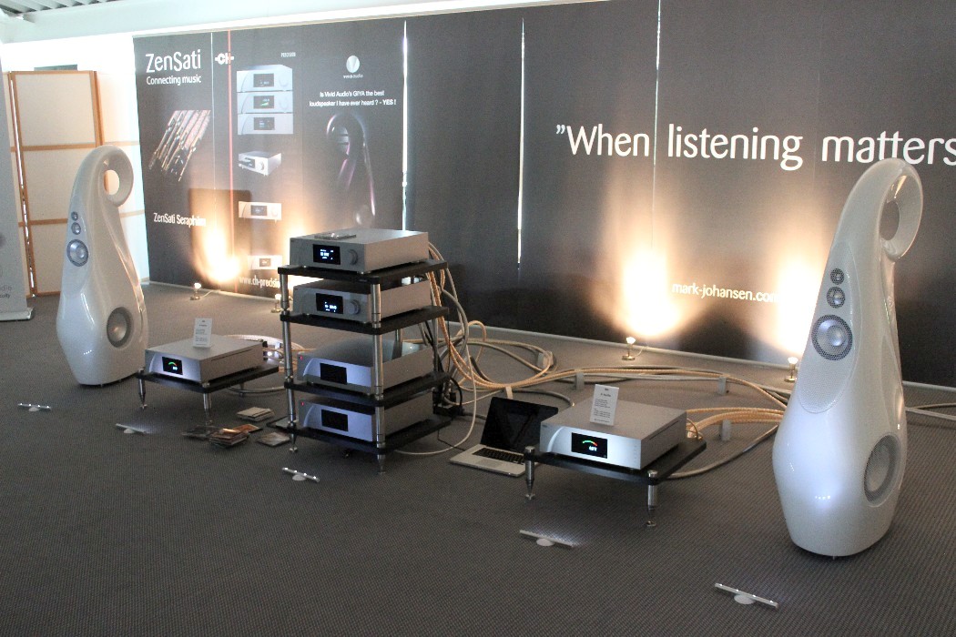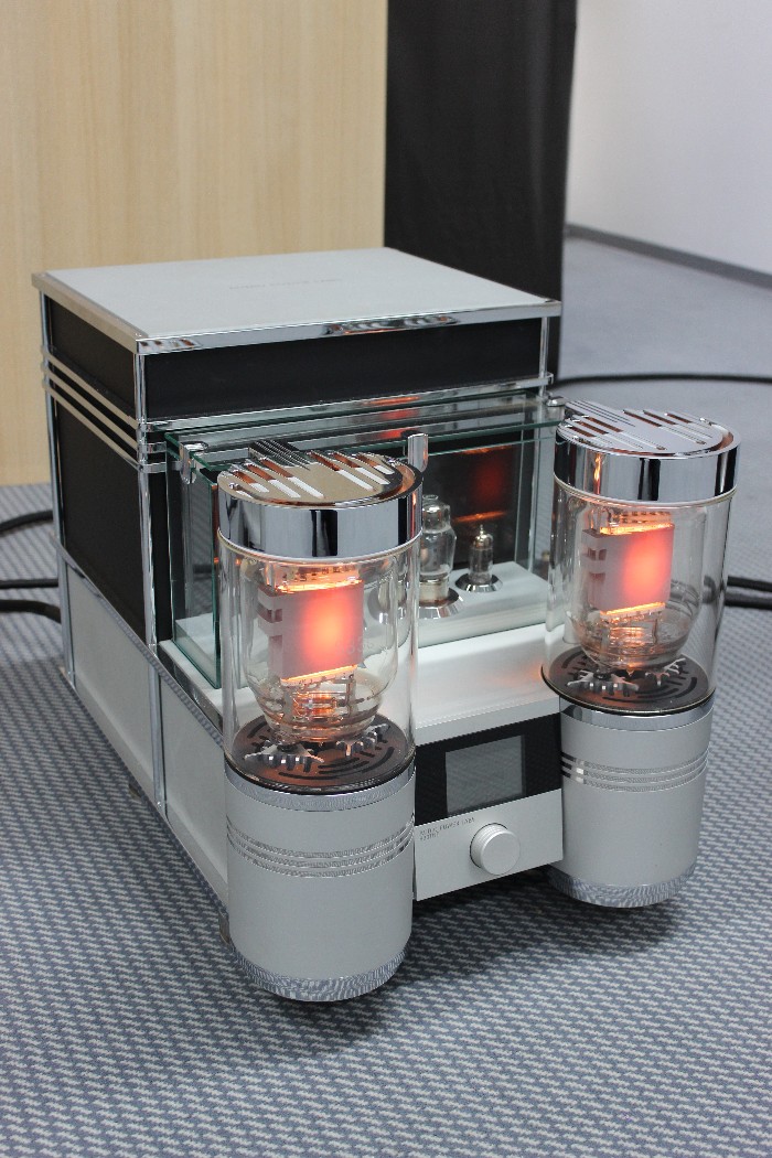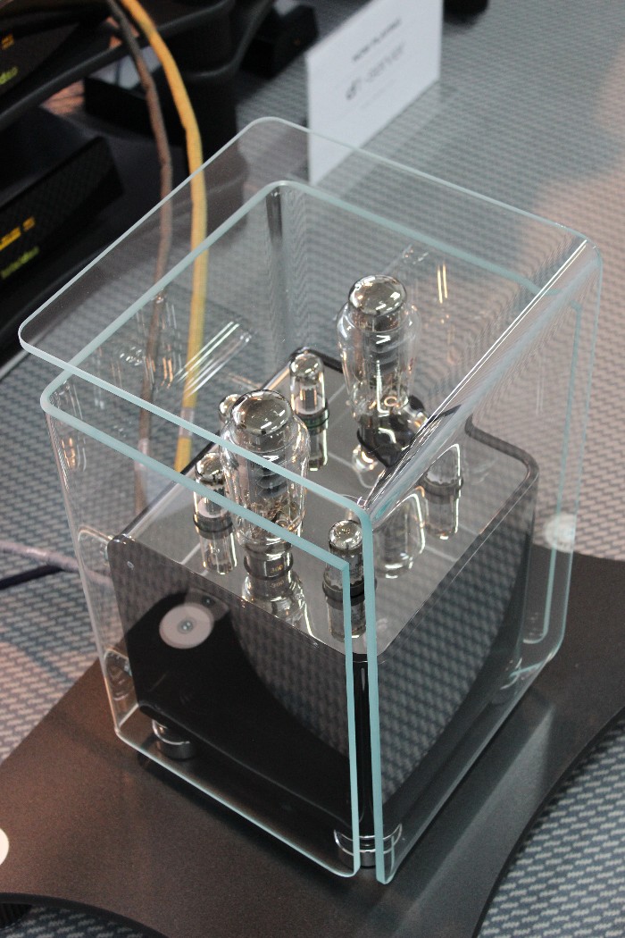 Offensichtlich ging es auf dieser Messe in erster Linie nicht um Musik. Kopfschüttelnd verließ ich zum Beispiel am Ende einen Raum, in dem seltsamerweise nur noch die vorderste Stuhlreihe frei war, als ich ihn betrat. Kaum hatte ich mich dort hingesetzt, forderte mich der Aussteller auf, meinen Platz zu verlassen. Ich sollte warten, bis die – scheinbar sehr wichtigen – Herren hinter mir ungestört fertiggehört hatten. Das fand ich zwar reichlich seltsam, aber da ich ohnehin noch Fotos machen wollte, griff ich zur Kamera und schickte mich an, die imposanten Monoendstufen von Audio Power Labs mit ihren riesigen 833er-Leistungsröhren aus der Nähe zu fotografieren. Aber selbst meine kurze Präsenz zwischen den Lautsprechern von Vivid Audio duldete der Vorführer – beziehungsweise die sehr wichtigen Herren – nicht und schickte mich erneut nach hinten. Mein Tipp: Nächstes Jahr bitte gleich ein „Zutritt verboten“-Schild an der Tür anbringen und den Anlagen in den angrenzenden Zimmern den Strom abdrehen. Ist ja schließlich eine Messe, da will man halt seine Ruhe haben, gell?