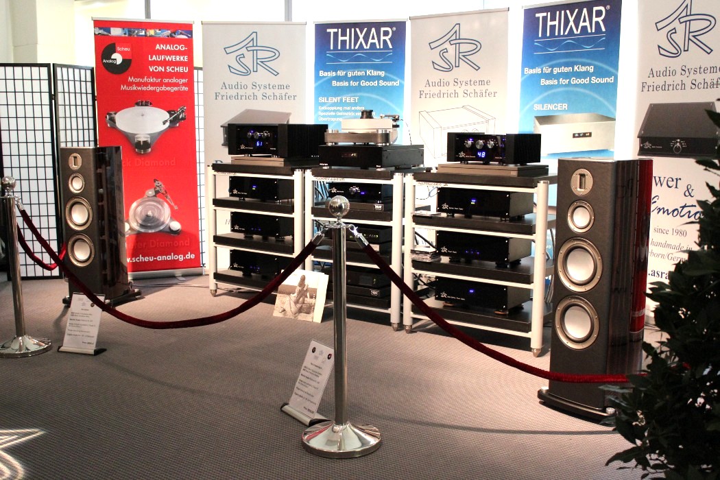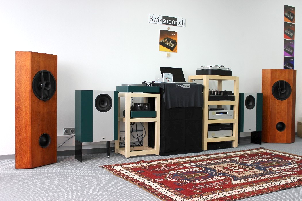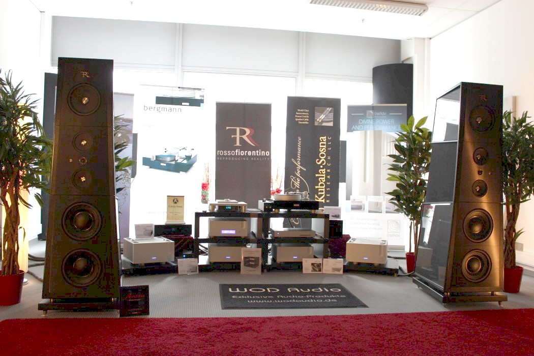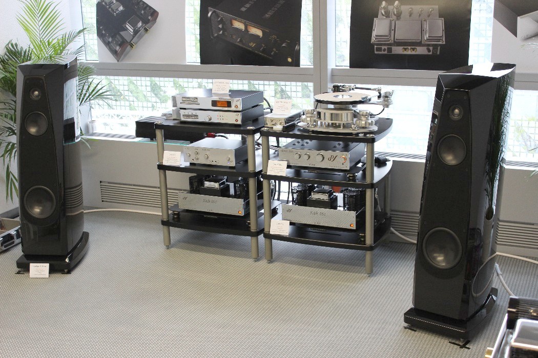 Auf der kleinen Parallelmesse Hifideluxe war im Gegensatz zur wieder sehr gut besuchten HighEnd ziemlich tote Hose, selbst am Samstagnachmittag. Allerdings gab es auch hier einige musikalische Lichtblicke, die den Abstecher rechtfertigten; allen voran Audioplan mit einer großen Jadis-Kette an Thomas Kühns Top-Box. Kräftige Raumresonanzen im Tieftonbereich ließen zwar den Bass versumpfen, doch das hielt die französische Röhrenelektronik kaum davon ab, ihren gewohnten Zauber zu entfalten. Leider bewegen wir uns ähnlich wie bei Kondo auch hier schnell in sechsstelligen Preisregionen.