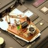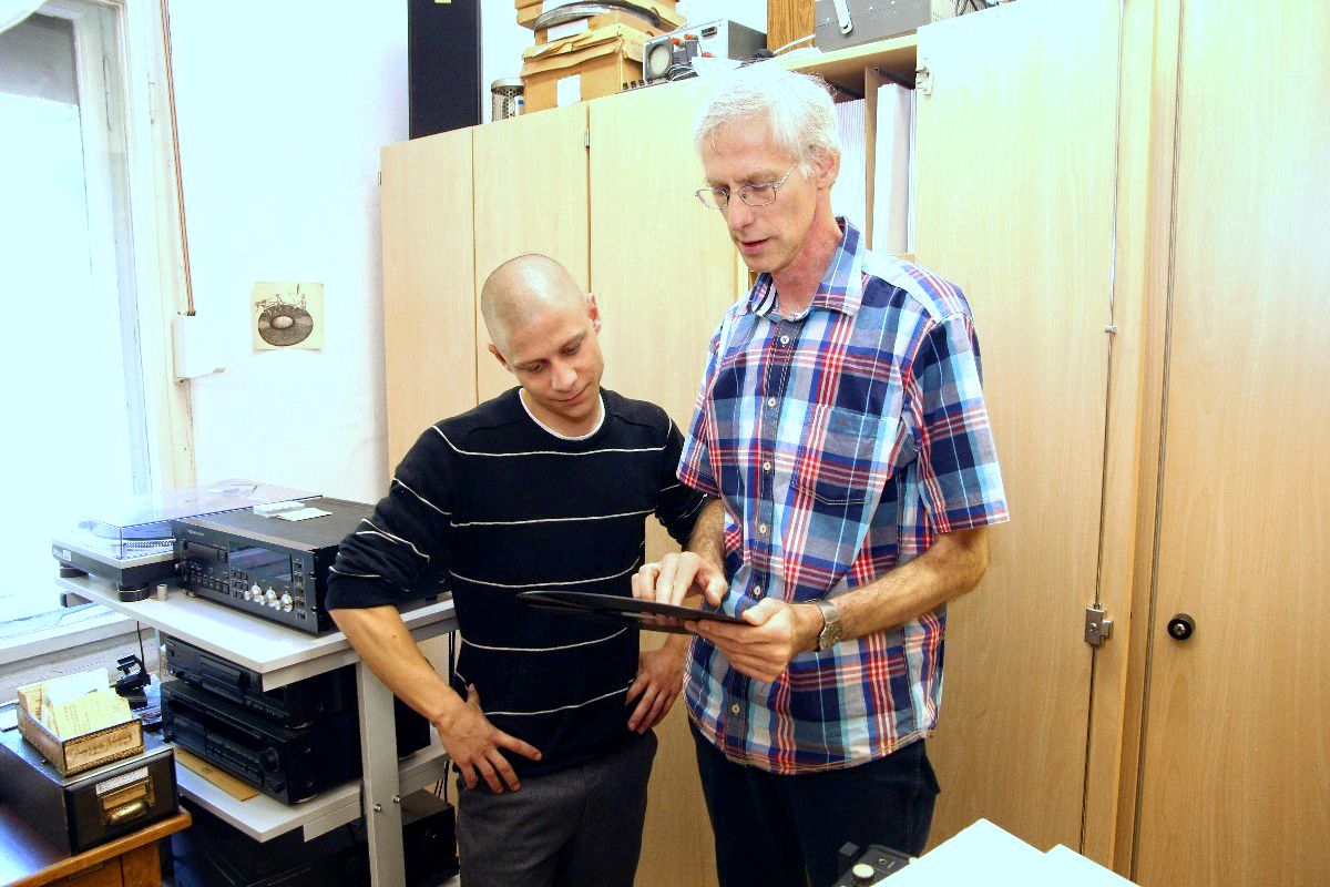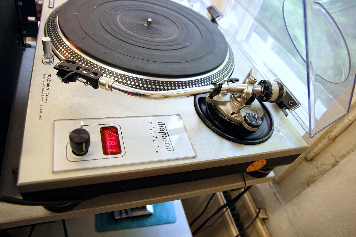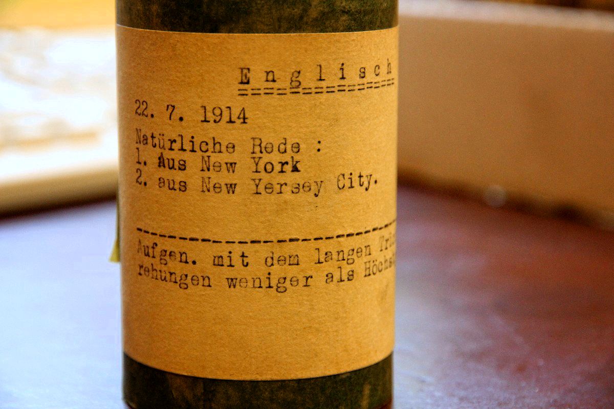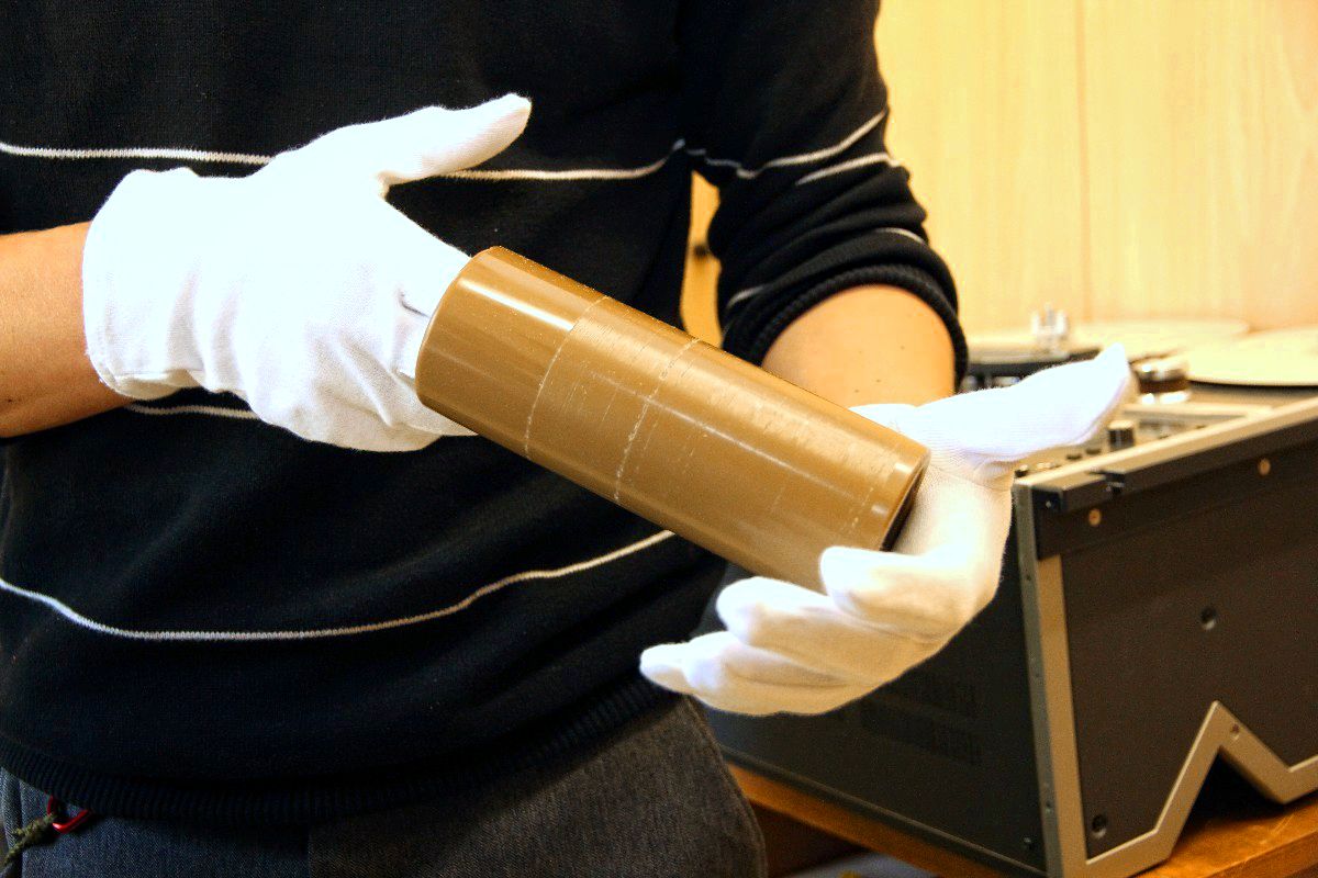 In dem nur knapp 20 Quadratmeter großen Raum versammeln sich wahre Schätze des aufgezeichneten Wortes, von besagten Wachswalzen, die hier nur mit weißen Handschuhen angefasst werden und von teils wunderschönen Verpackungen mit handschriftlichen Notizen umhüllt sind, über Schallplattenraritäten bis hin zu Tonbändern in den markentypisch orangenen Schachteln von AGFA. Etliche davon stammen aus der DDR-Produktion von AGFA Wolfen und sind daher auf der Rückseite in bruderstaatlichem Kyrillisch bedruckt. Zwei Spezialmaschinen erregen hier die Aufmerksamkeit des geneigten Audiomenschen. Erstens ein in den USA modifizierter Technics-Plattenspieler, der jeden DJ neidisch machen sollte, weil er von Faststillstand bis weit über 78 Umdrehungen pro Minute alle Geschwindigkeiten stufenlos beherrscht und exakt anzeigt. Zweitens eine rustikale modifizierte Tonbandmaschine von Otari mit ersten Gehversuchen zum digitalen Samplen kleinerer Sprechpassagen.