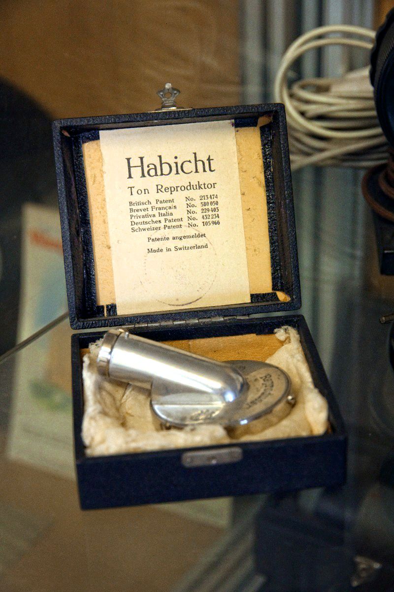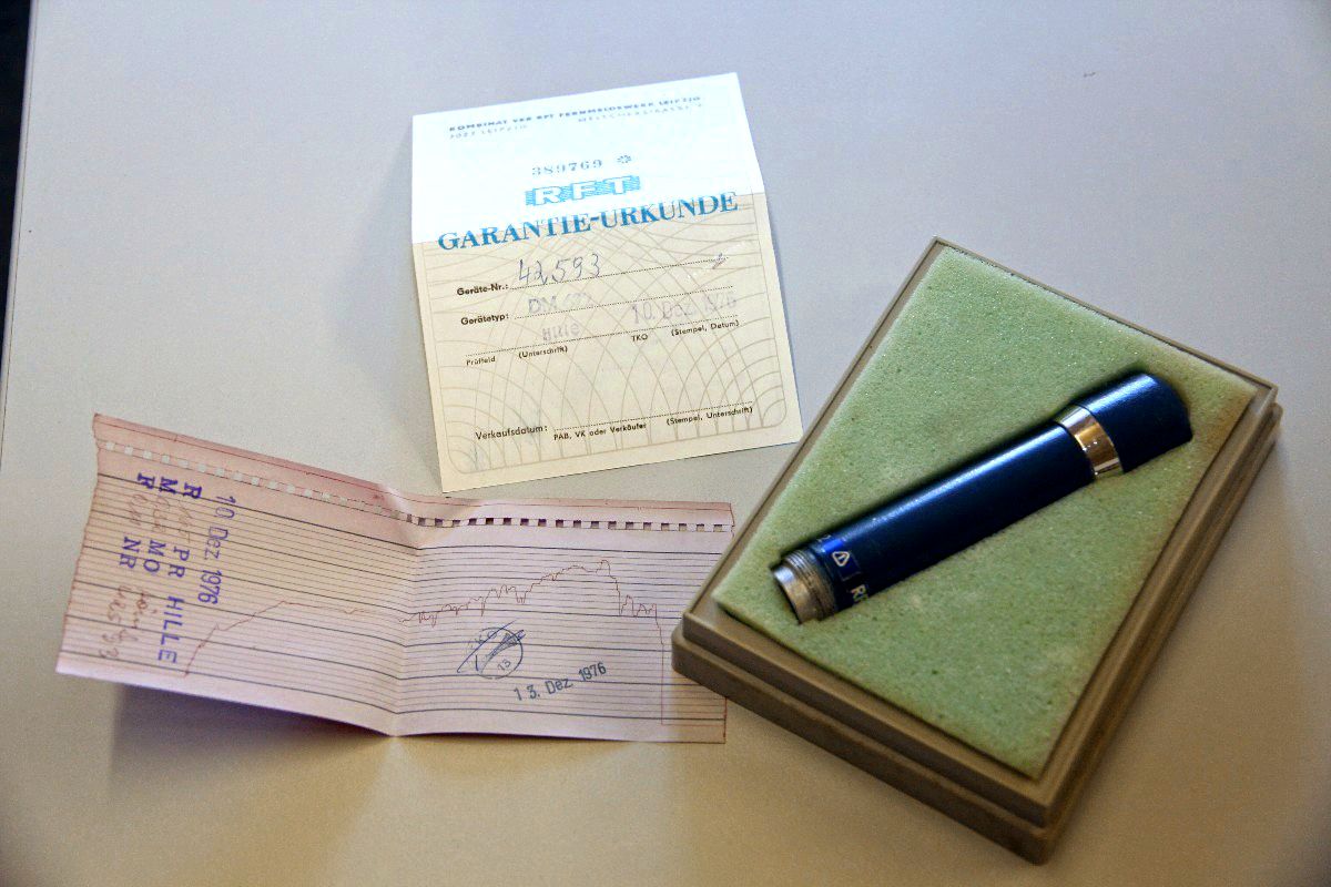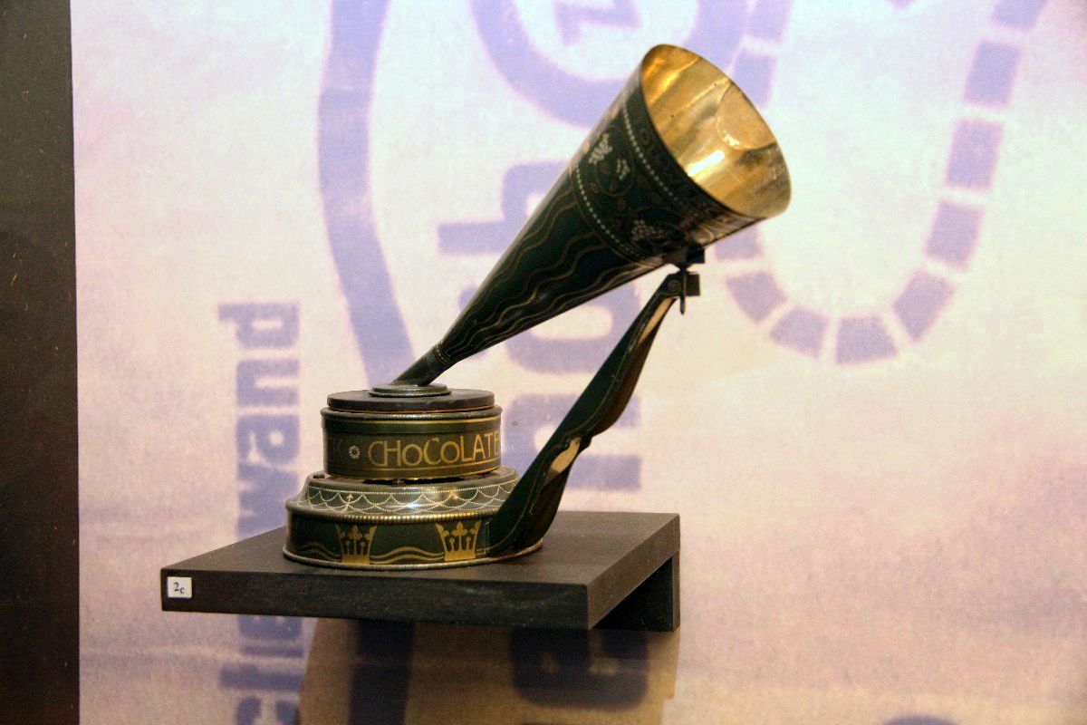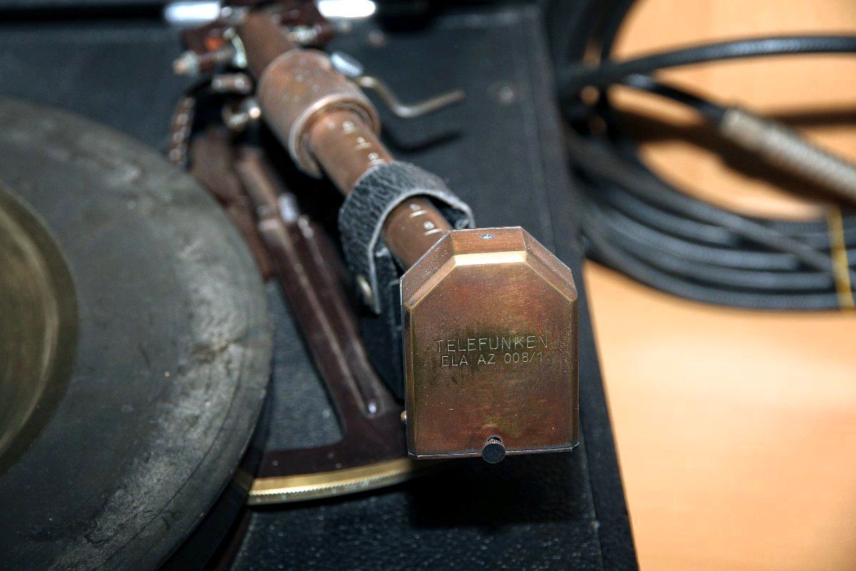 Im erweiterten Eingangsbereich der Villa sind dann tatsächlich ein paar optische Highlights des Instituts hinter schwerem Glas arrangiert: von einem kleinen Abspielgerät der Firma Stollwerk für die nur kurzzeitig erhältlichen Schokoladen-Schallplatten (garantiert ungenießbar) über frühe Freizügigkeiten der Marke Electromophon bis hin zu schwerem Aufnahmegerät samt Zubehör – die ganze Vitrine ist ein echter Hingucker und steht zu Recht an dieser prominenten Stelle.