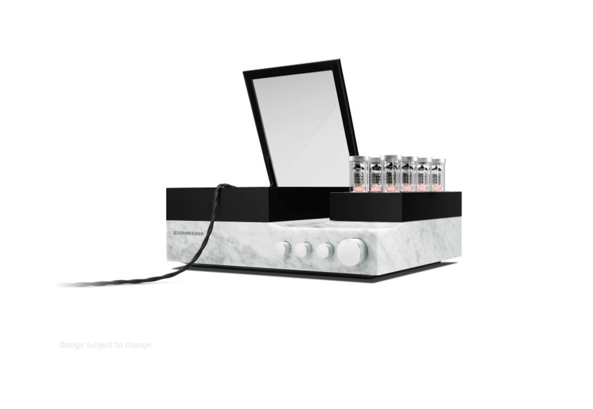 Acht Vakuumröhren bilden das Herzstück des Verstärkers, der das eingehende Audiosignal verarbeitet. „Röhrenverstärker glänzen durch ihre überlegene Impulsverarbeitung“, sagt Axel Grell, Portfolio Manager Audiophile bei Sennheiser. „Eine Herausforderung ist jedoch ihre Empfindlichkeit gegenüber jeglichem Schall, der über feste Gegenstände und die Luft übertragen wird.“ Aus diesem Grund wurde das Gehäuse aus granularem, inhomogenem Carrara-Marmor gefertigt und mit dem Verstärker schwingend aufgehängt. Durch die Entkopplung der Röhren in Kombination mit den dämpfenden Eigenschaften des Marmors wird die Übertragung von Körperschall auf ein absolutes Minimum reduziert. Auch die Röhren selbst sind durch eine zum Patent angemeldete Umhüllung aus hochqualitativen Quarzglaskolben perfekt gegen Schalleinflüsse geschützt und vollkommen von der Umgebung abgeschirmt.