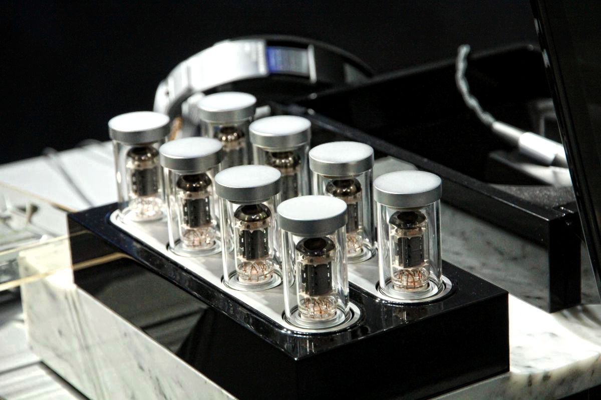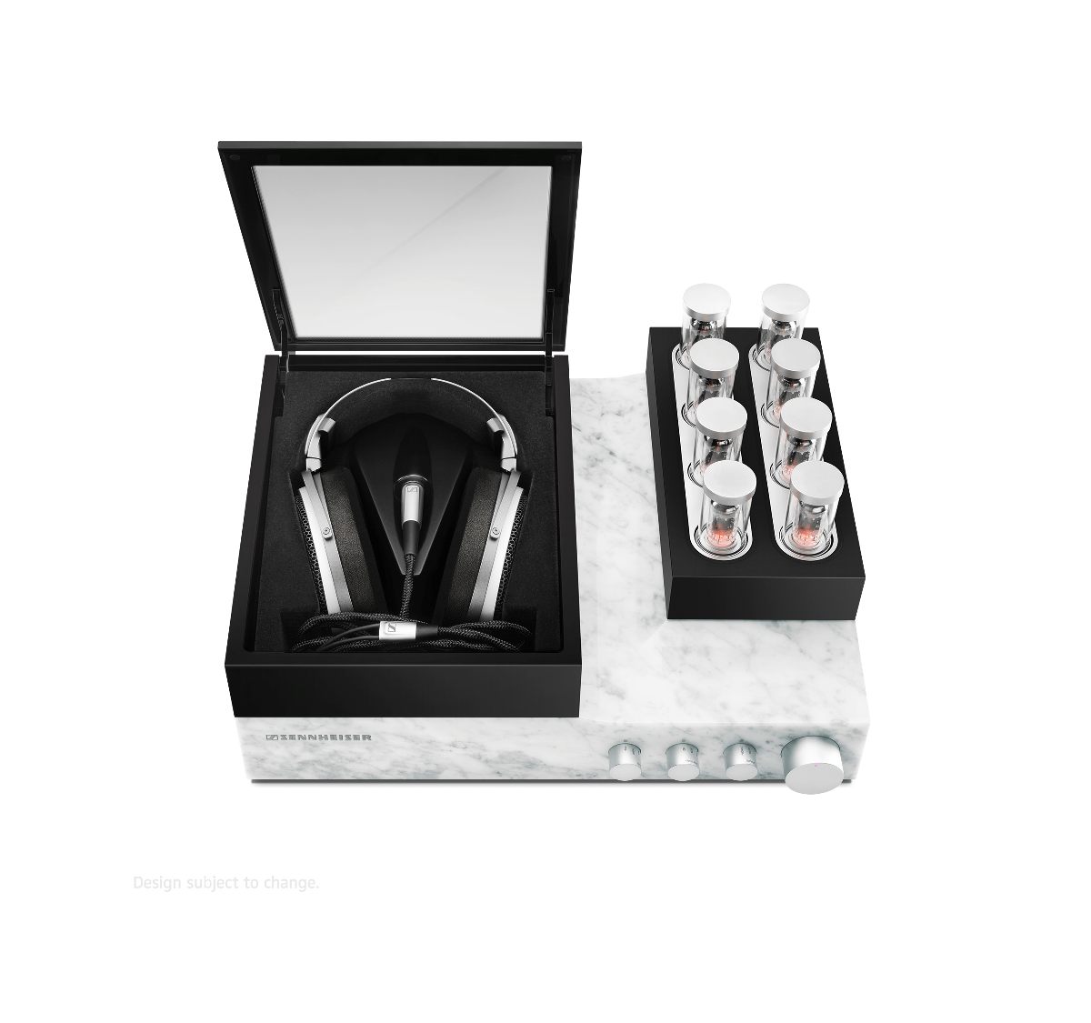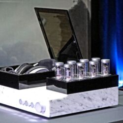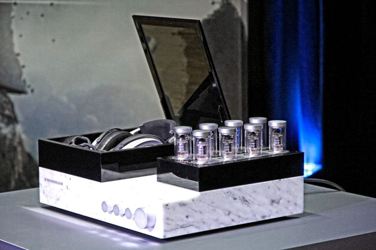 Auf geht’s nach Wedemark bei Hannover! Sennheiser lädt zur Präsentation des neuen Sennheiser Orpheus, der Nonplusultra-Kopfhörer soll erstmals auch „live“ zu hören sein. Das System stiehlt sogar dem Ur-Orpheus von 1991 die Show, zumindest beim „Aufwecken“. Durch das Einschalten des Verstärkers kommt nämlich Bewegung in die Sache: Ein Röhren-Oktett erhebt sich majestätisch aus einem schwarzen Alublock und beginnt zart zu glimmen. Links davon öffnet sich langsam eine große Glasklappe und gibt das staubgeschütze Fach mit dem Kopfhörer frei. Und aus der Front des Carrara-Marmorgehäuses fahren vier Drehknöpfe sanft heraus. Diese „Entfaltung“ darf man, je nach persönlichem Temperament, faszinierend oder irritierend finden. Angemessen für das, was jetzt zu hören sein wird, ist die Bauteile-Choreografie allemal.