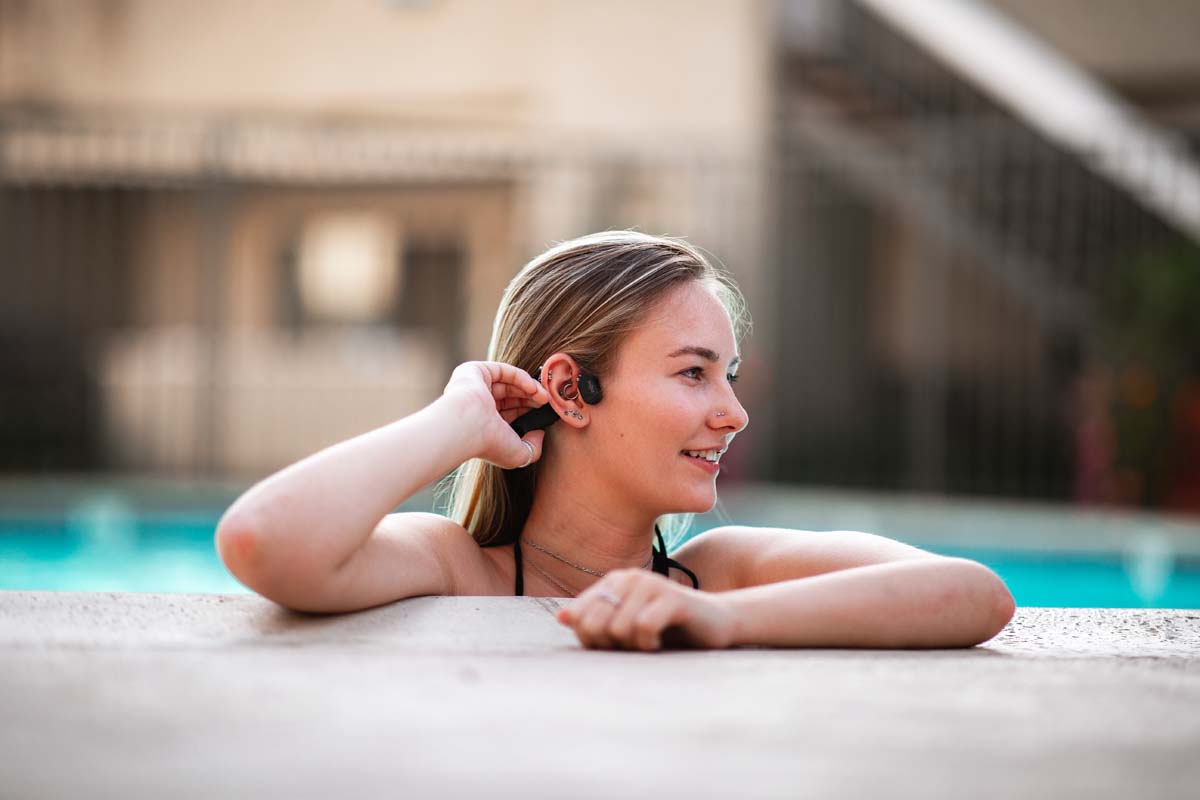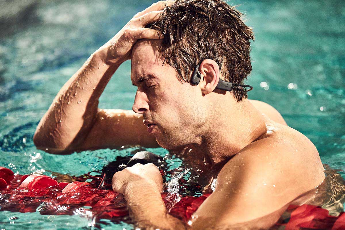 Mit dem Shokz OpenSwim Knochenschall-Kopfhörer kann man seine Musik selbst unter Wasser genießen und hat zudem die Ohren frei für die Umgebung.