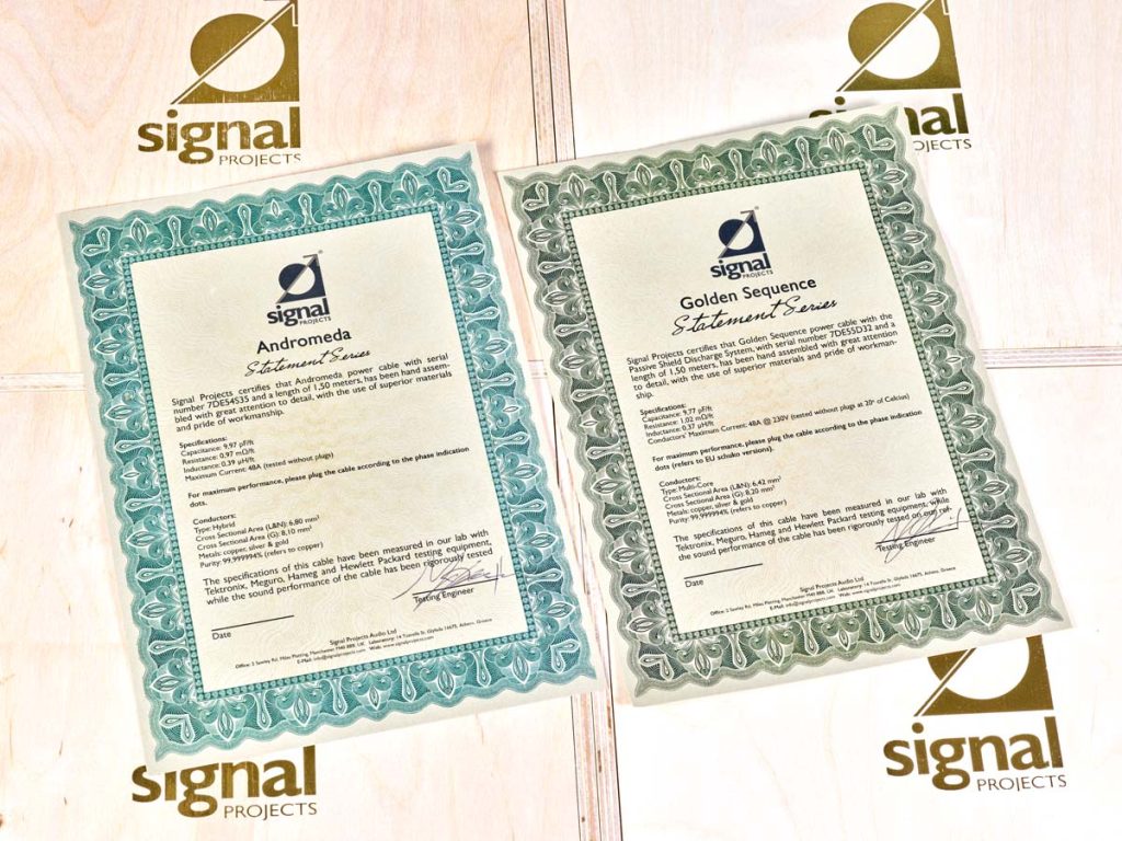 Stromkabel aus den „Statement Series“ Andromeda und Golden Sequence von Signal Projects