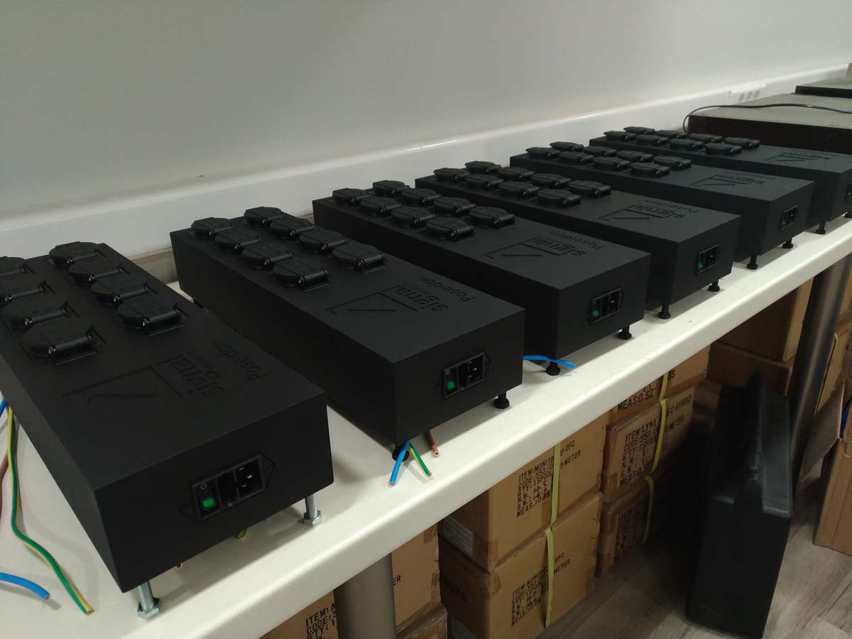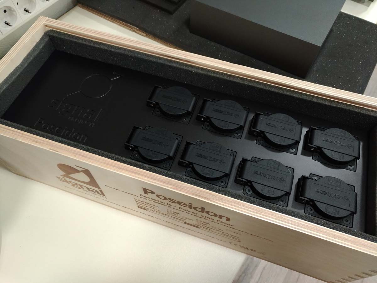 Der üppige Materialeinsatz erklärt dann auch das hohe Gewicht der Poseidon. Des Weiteren werden alle zugelieferten Einzelteile, wie der schon erwähnte Kaltgeräteanschluss und auch alle Metallteile, die sich in den Steckdosen befinden, nochmals hartbeschichtet und veredelt.