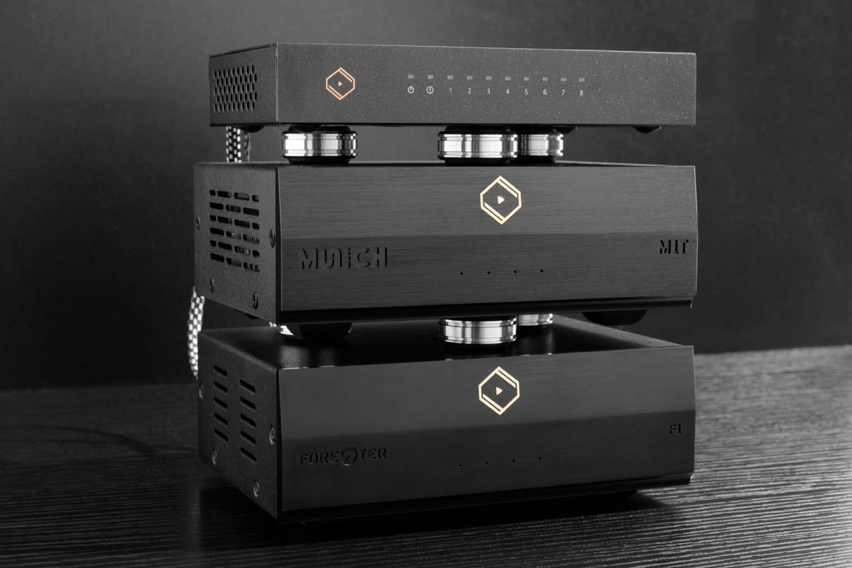 Die Music Streamer Munich M1, Munich M1T sowie Bremen B1 von Silent Angel wurden konsequent auf höchste Audioqualität optimiert. Sie verfügen über leistungsfähige ARM-Prozessoren, eine effiziente HF-Abschirmung sowie akribisch auf beste Kühlung und optimale Arbeitsbedingungen der Komponenten entwickelte Gehäuse. Dadurch garantieren sie ein Klangerlebnis, wie es bisher nur mit den besten analogen HiFi-Legenden assoziiert wurde. Der digital ausgelegte Munich M1T sowie sein mit zusätzlichen analogen Ausgängen ausgestattetes Schwestermodell Munich M1 bieten eine Vielzahl von Eingangsoptionen. Der Music Streamer Bremen B1 ist dagegen für drahtlose Zuspieler via Bluetuooth und W-Lan ausgelegt. Mit dem hochwertigen Linearnetzteil Forester F1 sowie den DC-Kabeln der Bremen-Serie lässt sich das ohnehin faszinierende Klangbild der Streamer von Silent Angel auf High-End-Niveau steigern.