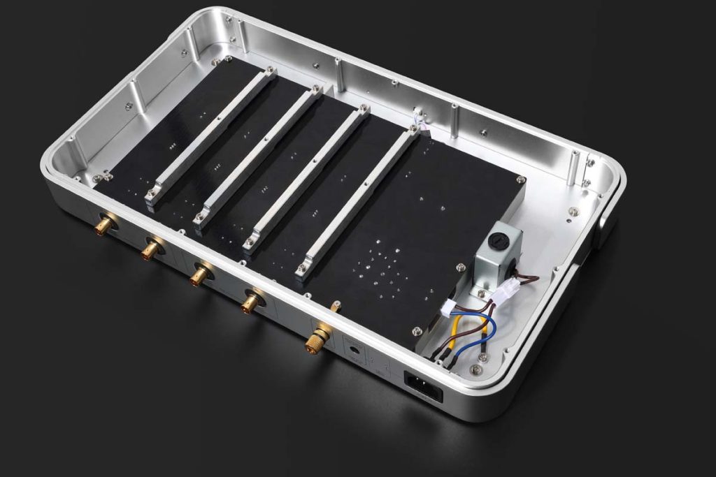 Bereits mit dem Netzwerk-Switch Bonn N8 Pro hat Silent Angel eindrucksvoll bewiesen, welchen Einfluss Netzwerkkomponenten auf die Audioqualität haben. Mit Bonn NX verfolgt der Hersteller die eingeschlagene Richtung konsequent weiter. Der Switch ist bis zur letzten Schraube auf engelsgleichen Klang optimiert. Das akribisch auf perfekte Vibrationsdämpfung sowie ideale elektrische Abschirmungseigenschaften ausgelegte, zweiteilige Gehäuse aus galvanisiertem Stahl und einer Aluminiumlegierung beherbergt acht goldbeschichtete Ethernet-Ports.