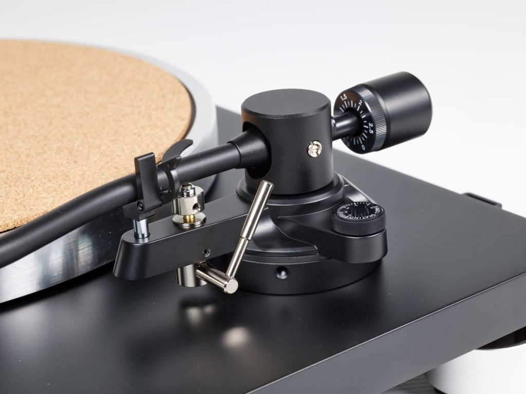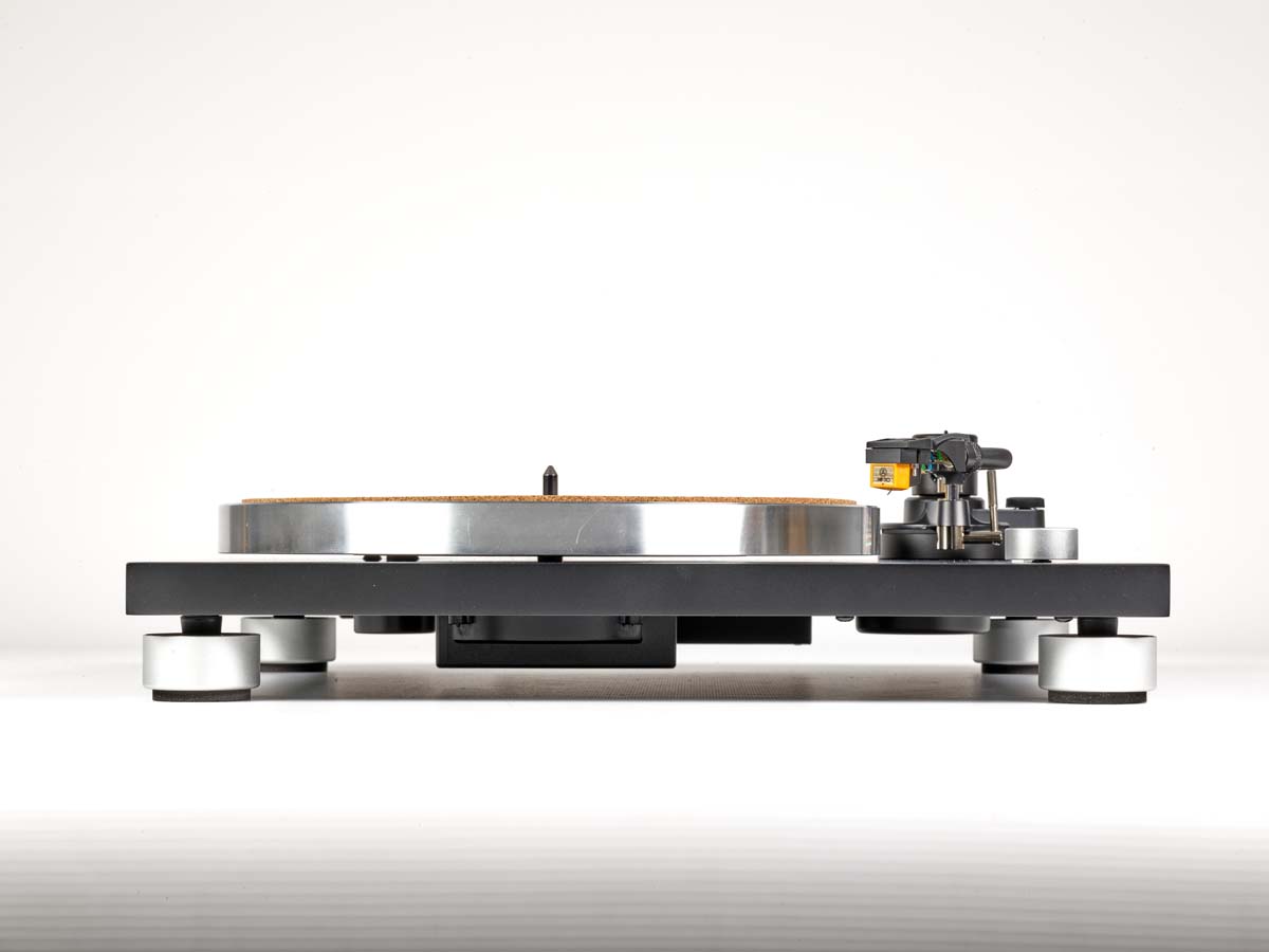 Der Zusatz „SE“ verrät übrigens, dass wir es hier nicht mit der Standardausführung zu tun haben, sondern mit der rund 200 Euro teureren Edelvariante, die eine Reihe von Detailverbesserungen mitbringt. Neben einem schwereren, bedämpften Aluminium-Plattenteller umfassen diese eine Plattenauflage aus Kork, einen doppelt gelagerten Tonarm und zu guter Letzt ein Tonabnehmer-Upgrade vom Ortofon 2M Red auf einen Nagaoka MP-110.