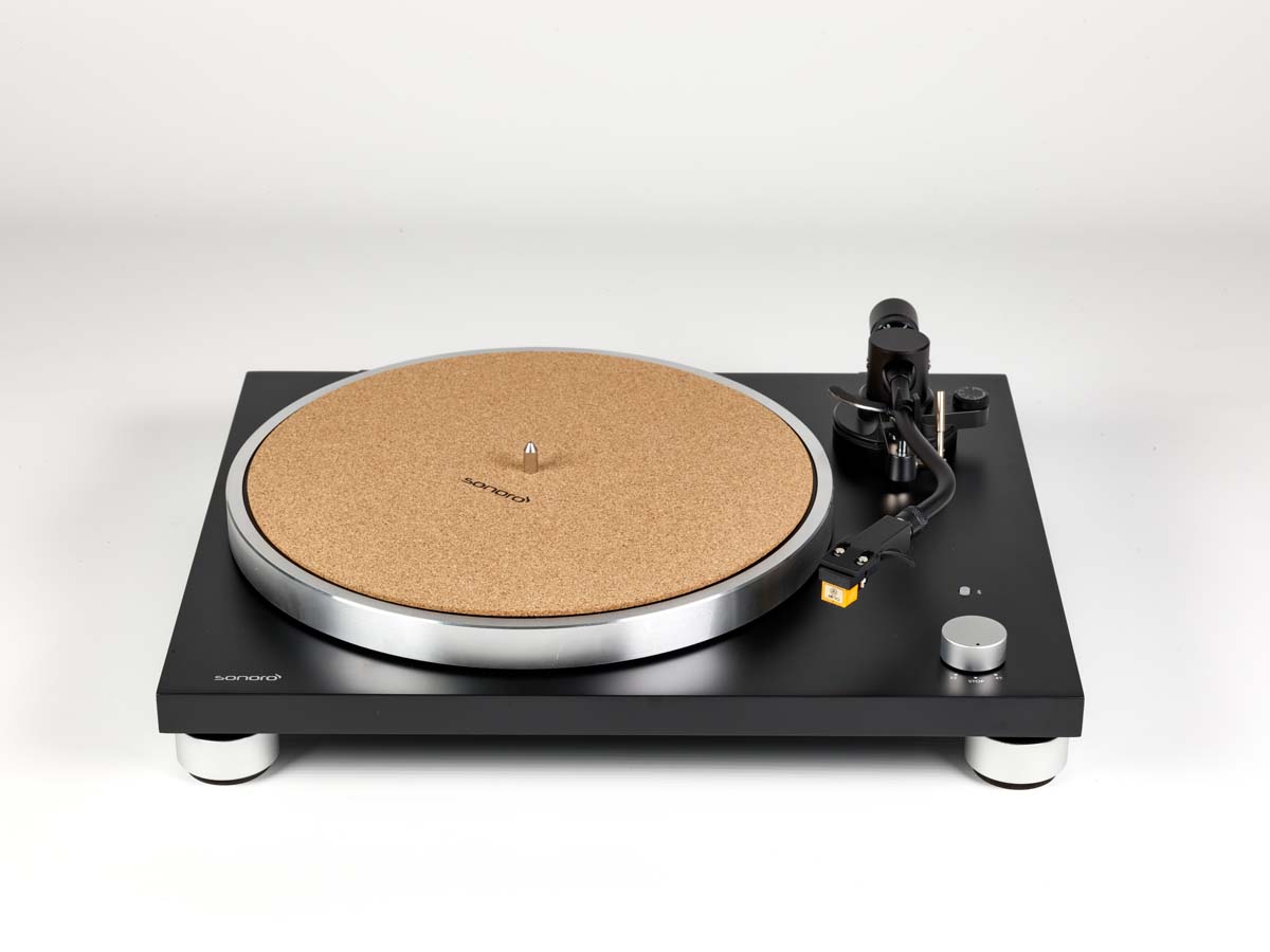 Kann man nach etwa zwei Jahrzehnten überhaupt noch von einem Revival sprechen? Ich behaupte mal: Nein. Die Schallplatte hat nach der Einführung der CD massiv geschwächelt, sich seitdem aber nachhaltig erholt und einen dauerhaften Platz in einer eigenen, nicht zu verachtenden Nische gesichert. Tatsächlich ist diese Nische so beständig, dass sich mittlerweile die ersten Hersteller darum bemühen, die nächste Generation Musikliebhaber an das schwarzglänzende Medium zu gewöhnen. Vorne mit dabei ist der Neusser Hersteller Sonoro, der mit dem Platinum einen angenehm budgetfreundlichen Plattenspieler im Angebot hat, der auf genau die richtige Art klassisch gestaltet ist: Der Sockel enthält sich jeglicher Schnörkel, kommt dafür in einem schön seidigen Mattschwarz daher. Der Drehzahlsteller und die zylindrischen Kragen der recht aufwendigen Füße, beides in mattsilbernem Echtmetall ausgeführt, komplimentieren die Zarge wirkungsvoll. Der geschwungene Tonarm ist das einzige Designelement, das dem Dreher einen leichten Retro-Anstrich verleiht. Keine Frage: der Platinum SE ist vielleicht kein Prunk-, aber auf jeden Fall ein Schmuckstück.