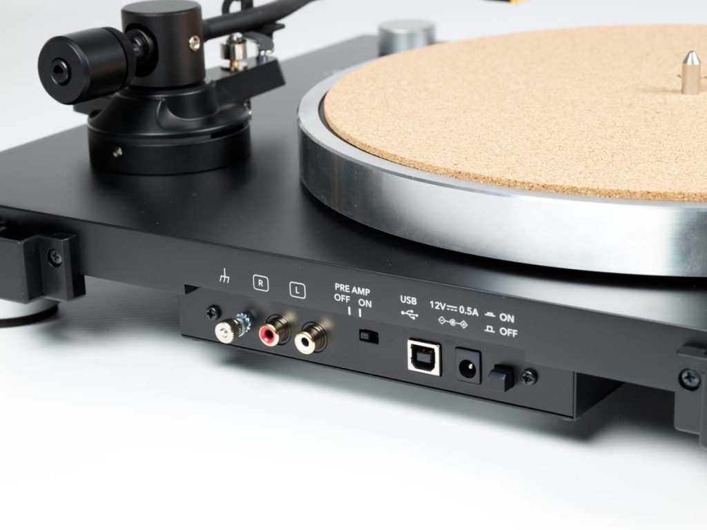 Auch wenn der Platinum SE im Kern ein klassischer, manueller, riemengetriebener Dreher ist, will die Generation Z natürlich dennoch dort abgeholt werden, wo sie steht. Deshalb verfügt er ebenso über Bluetooth-Funktionalität, lässt sich also überall im Zimmer aufstellen und kabellos etwa mit einem Streaming-Vollverstärker, einem Paar BT-fähiger Aktivlausprecher oder auch einem Bluetooth-Kopfhörer koppeln, sofern dieser über eine eigene Lautstärkeregelung verfügt. Das erspart es dem audiophilen Zoomer, unmittelbar nach dem Absenken der Nadel in seinen Lieblings-Schaukelstuhl zu hechten, bevor der Abtaster mit der Einlaufrille durch ist. Stattdessen kann er aptX sei Dank in aller Ruhe durchs Zimmer stromern – Musik ist, wo der Hörer ist. Zudem verfügt der Platinum SE über einen USB-Ausgang, sodass sich der Dreher zugleich auch als Vinyl-Ripper einsetzen lässt. Auch sonst ist er konsequent darauf ausgelegt, den Schallplattengenuss so zugänglich wie möglich zu machen, und bringt deshalb auch einen zuschaltbaren integrierten MM-Entzerrer mit. Natürlich lässt sich der Plattenspieler auch klassisch verbinden, eine RCA-Strippe mit Erdungskabel liegt bei.