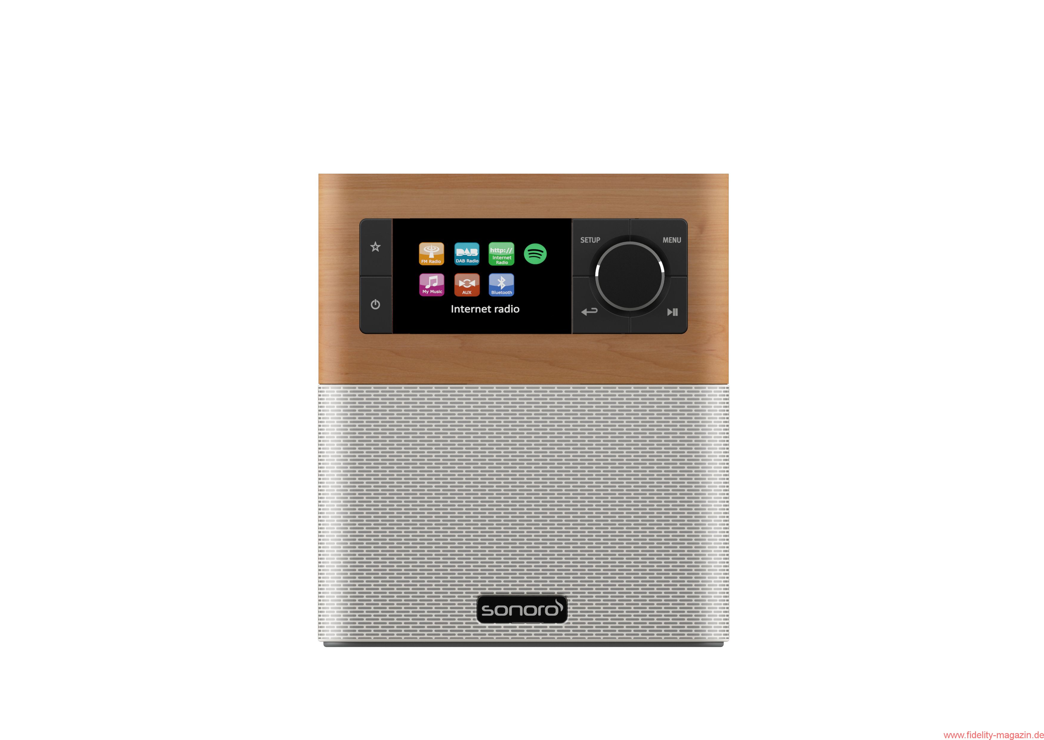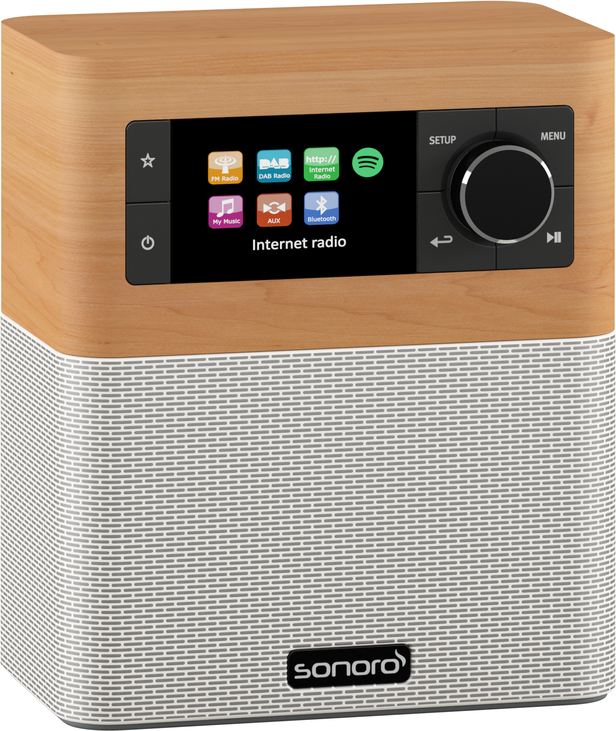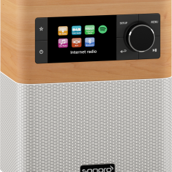 Diese lässt sich auch leicht einrichten: Sobald der Sonoro STREAM mit dem Stromnetz verbunden ist (Akkubetrieb ist nicht möglich) startet auch schon der Einrichtungsassistent, der umgehend eine problemlose Verbindung mit dem heimischen Netzwerk ermöglicht. Von dort ins Hauptmenü weitergeleitet, zeigt das Display zahlreiche farbenfrohe Icons, hinter denen sich eine Fülle an Features verbirgt. Durch die zusätzliche Antenne fungiert der STREAM auch als UKW-Empfänger und wird zum vollwertigen Radio. Ergänzt wird die analoge Funktionalität durch das digitale DAB+ sowie, bei entsprechender Verbindung, von tausenden Sendern über das Internet. Diese lassen sich wahlweise, nach Land oder Genre sortiert, einfach mithilfe des multifunktionalen Rades durchscrollen. Hier finden sich zwischen allen nur denkbaren Stilrichtungen – von Hip Hop über Bluegrass bis Heavy Metal – auch zahlreiche Podcasts aus aller Welt, die direkt über das Internetradio abspielbar sind.
