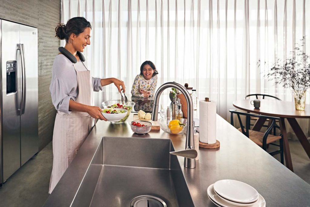 Dank seines spritzwassergeschützten IPX4-Designs lässt sich der SRS-NS7 überall im Haus verwenden, auch bei alltäglichen Aufgaben wie dem Abwasch. Außerdem können die Nutzer dank des offenen Designs selbst dann Musik hören oder Sendungen verfolgen, wenn sie nicht direkt am Wiedergabegerät sind, und bekommen dabei auch mit, was um sie herum vor sich geht.