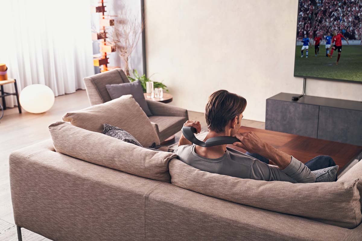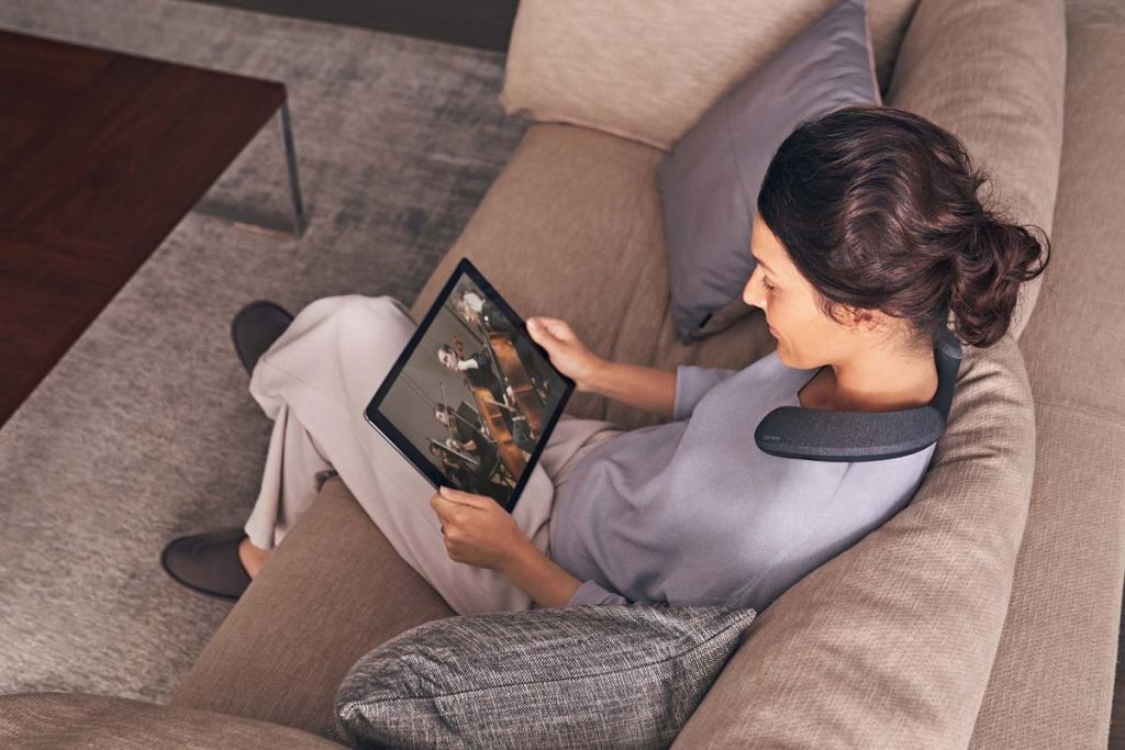 Für Ihr persönliches Heimkino – egal, wo in der Wohnung Sie gerade sind: Sony präsentiert den Nackenbügel-Lautsprecher SRS-NS7.