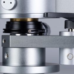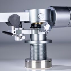 Natürlich kann man den Sorane ZA-12 auch ohne eine spezielle Laufwerksbasis in der Höhe verstellen. Man hat die Wahl zwischen drei verschiedenen Befestigungssystemen. Standard ist ein Einbau nach dem neueren Rega-Standard. Gegen Aufpreis steht das hauseigene Flanschsystem oder ein SME-Schlitten („Slider“) optional zur Verfügung. In jedem Fall sind seitlich zwei kleine Madenschrauben am Tonarmschaft zu lösen und wieder anzuziehen, um den korrekten vertikalen Abtastwinkel („Vertical Tracking Angle“, VTA) für den Tonabnehmer seiner Wahl einzustellen. Allerdings sollte man die Schrauben, die an ihrem Ende eine Teflonspitze besitzen, nicht zu fest anziehen. Sonst ist es mit ihrer dämpfenden Wirkung schnell vorbei.