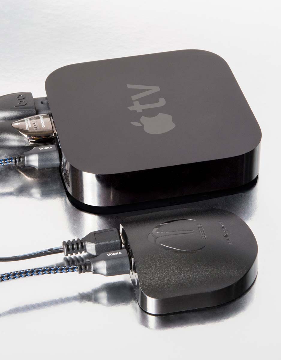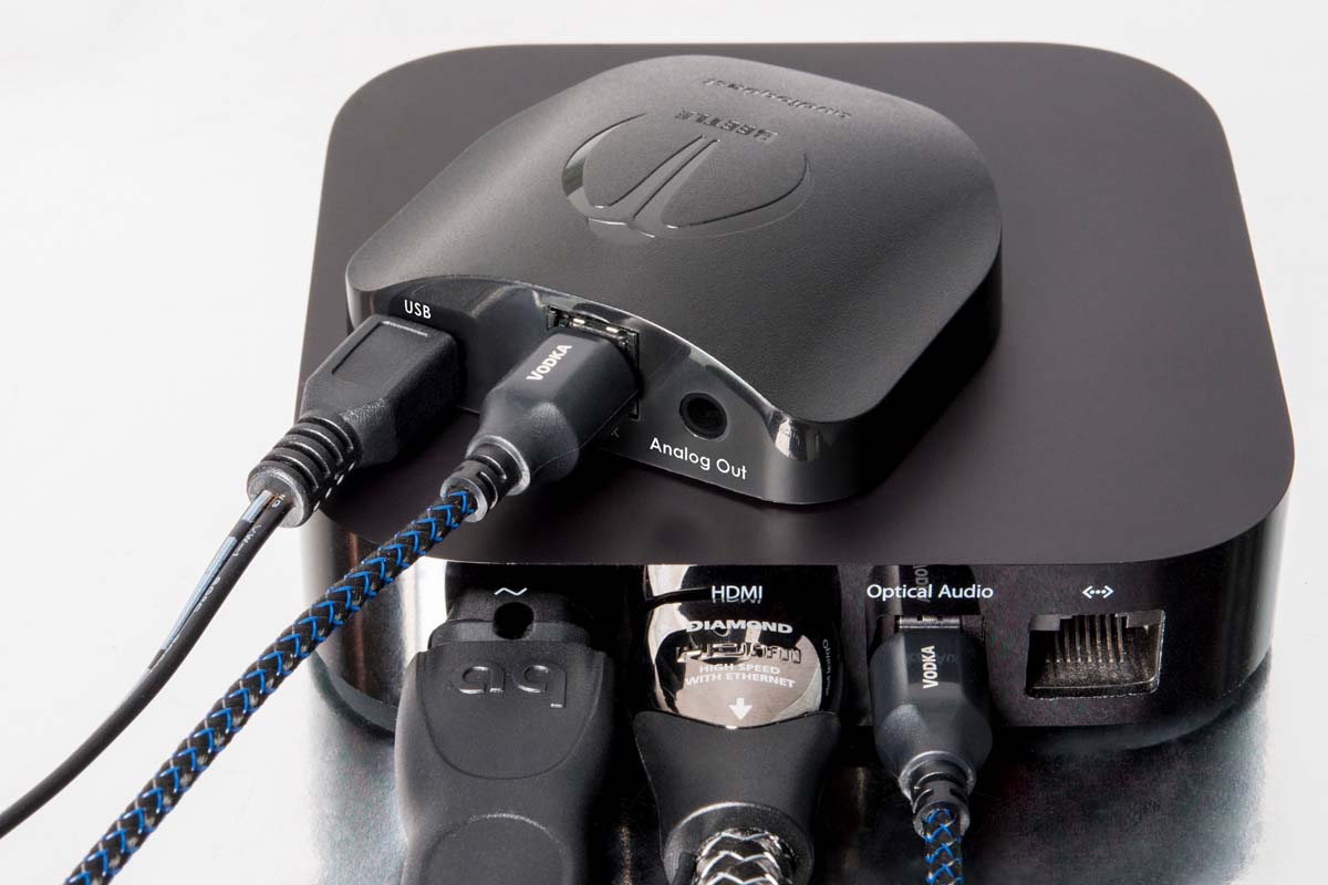 Wer den hochintegrierten DAC-Käfer nicht via Computer mit Soundfiles füttern will, kann ihn über eine optische Toslink-Verbindung auch an den CD-Player hängen, wobei vor allem ältere Geräte vom überaus erwachsenen Klang des Beetle profitieren. Mit der analogen Welt kommuniziert der Klang-Skarabäus via 3,5-mm-Klinkenbuchse; optional bietet AudioQuest diverse hochwertige Kabelsätze (ebenfalls ab 29 Euro) an, die alle mit dem Beetle möglichen Verbindungsvarianten abdecken. Aber auch auf Bluetooth-Protokolle versteht sich der kompetente Kleine besonders gut: Wenn die Musiksammlung etwa vom Smartphone über die heimische Stereoanlage wiedergegeben werden soll, kommt das einzigartige asynchrone Bluetooth-Verfahren des Beetle zum Einsatz, das sich gegen die üblichen Blauzahn-Verdächtigen hörbar besser in Szene setzen kann.