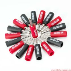 Das klangliche Ergebnis ist so überzeugend, dass ich die neuen Bananenstecker von Black Forest Audio als einzige Stecker an meinen Kondo-Silberkabeln akzeptieren und installieren werde. Sie sind die ersten und bisher einzigen Stecker, die im Vergleich zu den mit Silberlot überzogenen Kabelenden keinen klanglichen Nachteil aufweisen, zudem unkompliziert und sicher montier- und handhabbar sind – und sie haben nach all meiner Erfahrung tatsächlich keinerlei Einfluss auf die verschiedenen Klangkonzepte.