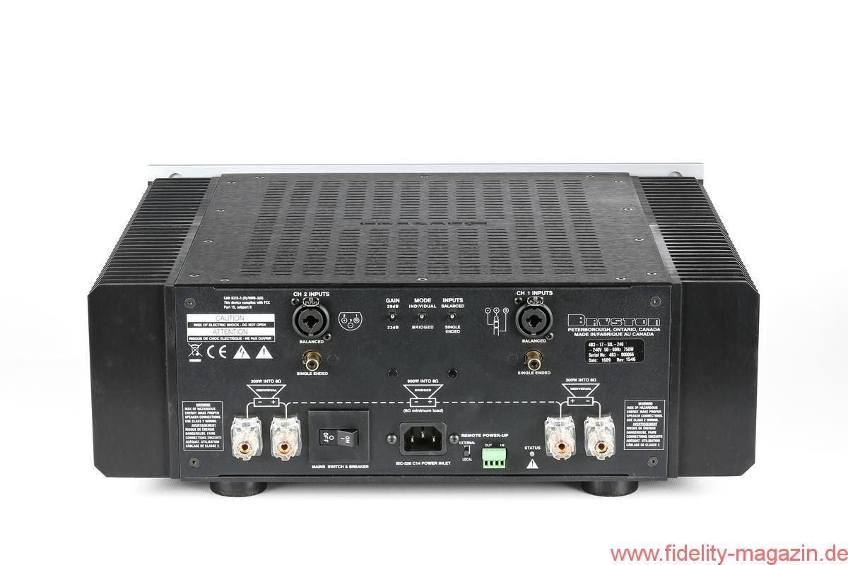 Dank ihrer Stabilität ist sie nach wie vor das Mittel der Wahl, wenn es gilt, angeblich schwierige Lautsprecher anzutreiben. In der aktuellen Inkarnation stehen laut Bryston pro Kanal 300 Watt an 8 Ohm und 500 Watt an 4 Ohm zur Verfügung, im Brückenbetrieb als Monoverstärker sogar 900 Watt an 8 Ohm. Da könnte schnell der Verdacht aufkommen, dass eine 4B „vor lauter Kraft nicht gehen“ könne und im musikalischen Sinne eher grob denn zart zu Werke ginge. Doch genau das ist – und war – nie der Fall! Ganz im Gegenteil: Die Qualität einer Bryston-Endstufe zeigt sich gerade darin, dass sie auch mit wirkungsgradstarken Lautsprechern harmoniert. Das macht sie bei Leise-Hörern genauso beliebt wie bei Betreibern anerkannt „zickiger“ Lautsprecher.